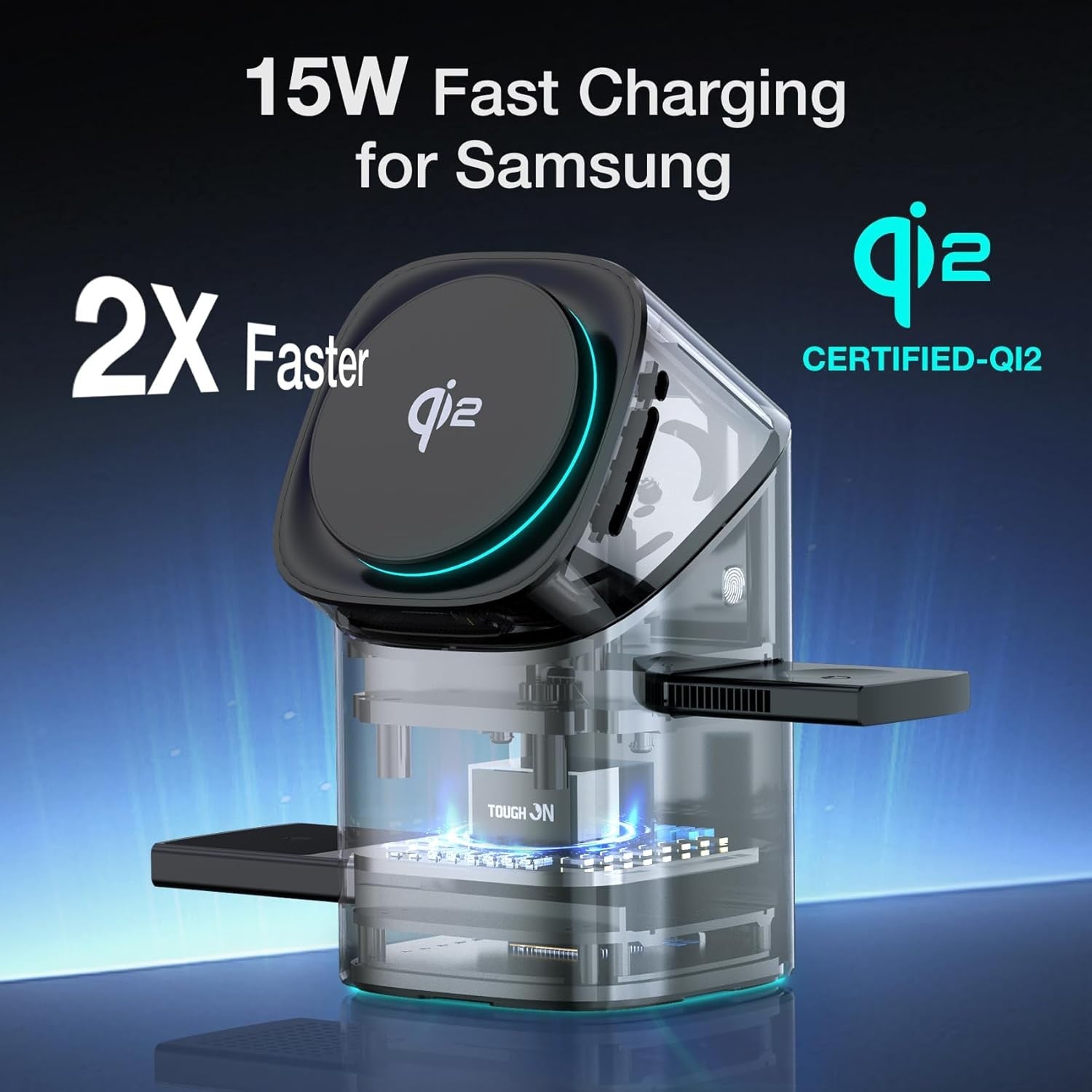 Introducing the TOUGH ON MagPro 3-in-1 Wireless Charger, expertly designed for Samsung devices. Experience the convenience of Qi2 certified 15W magnetic charging, perfect for your Galaxy S25/S24/S23 Series, Galaxy Watch, and Galaxy Buds. Enjoy fast, safe, and efficient charging with advanced safety features.