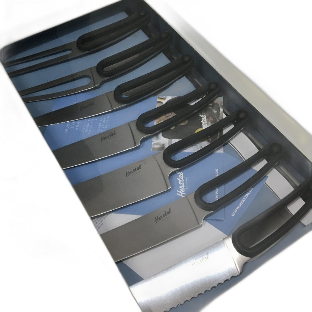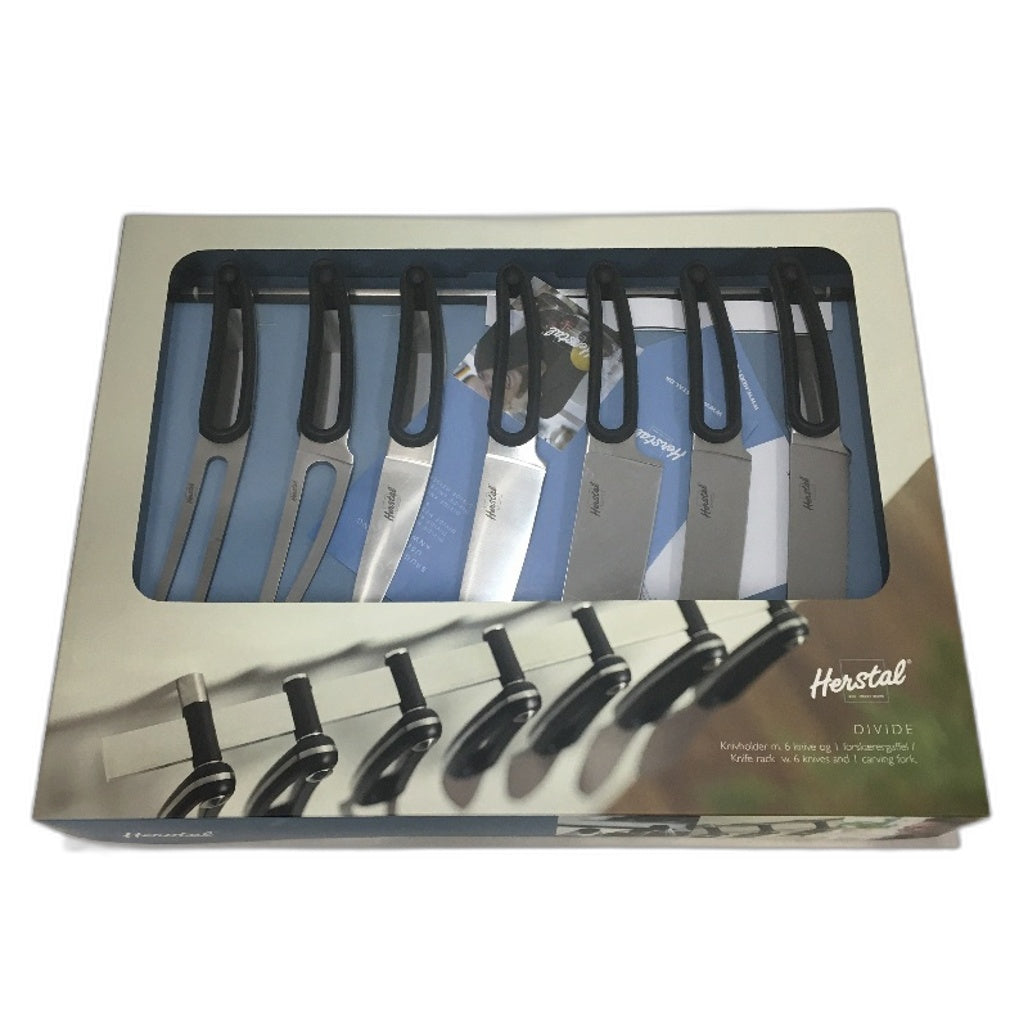 - Herstal Living 8 Piece Set 1 Knife Rack 6 Knives 1 Carving Fork NEW