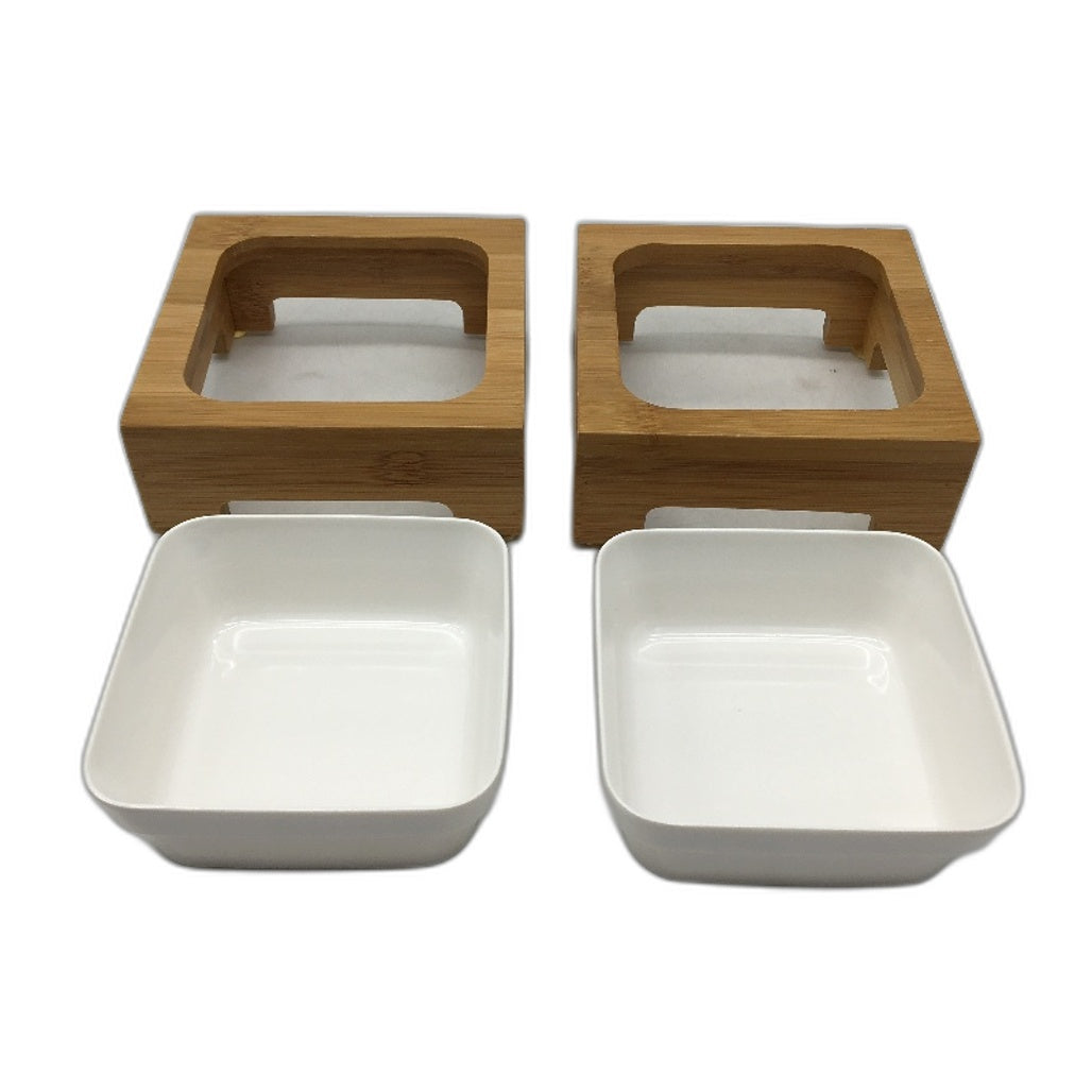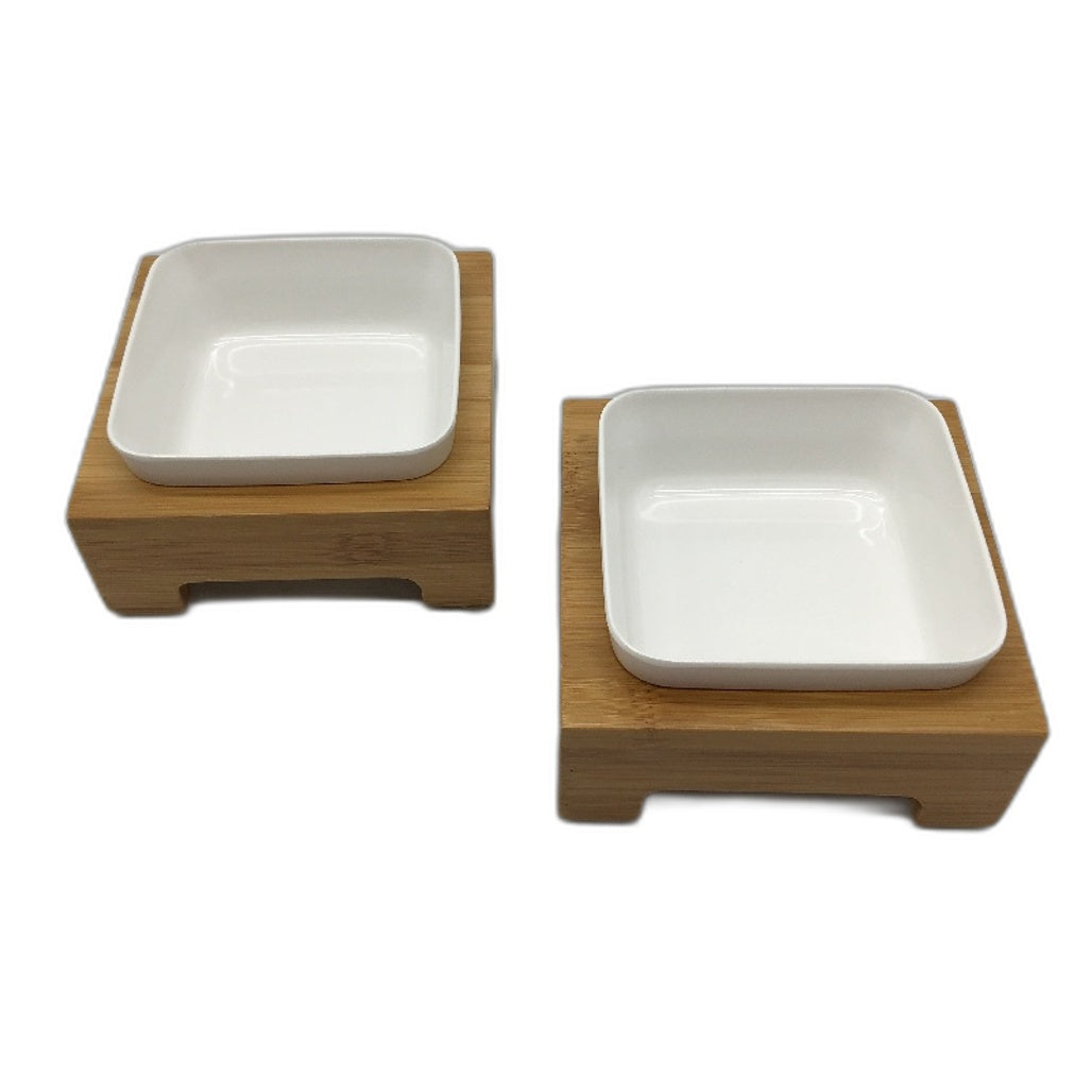 - 2 Pack Bamboo Elevated Pet Feeder Stand With Plastic Bowl Cats & Small Dogs NEW