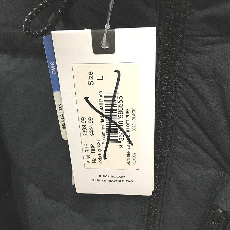 - Rip Curl Black Anti Series Elite Hi Loft 600+ Down Hooded Puffer Coat Size L NEW