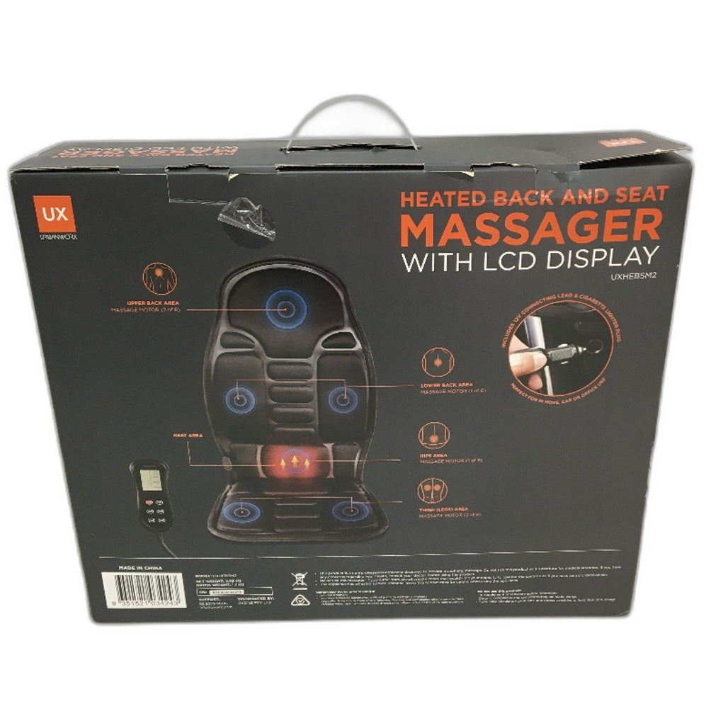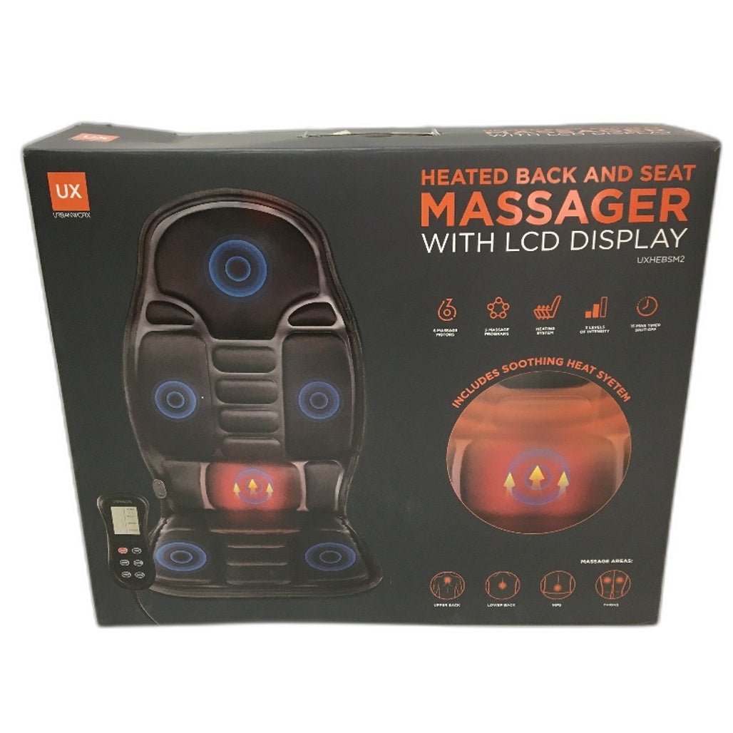 - Urbanworx UXHEBSM2 4 Area Back and Seat Kneading Massager with Heating NEW