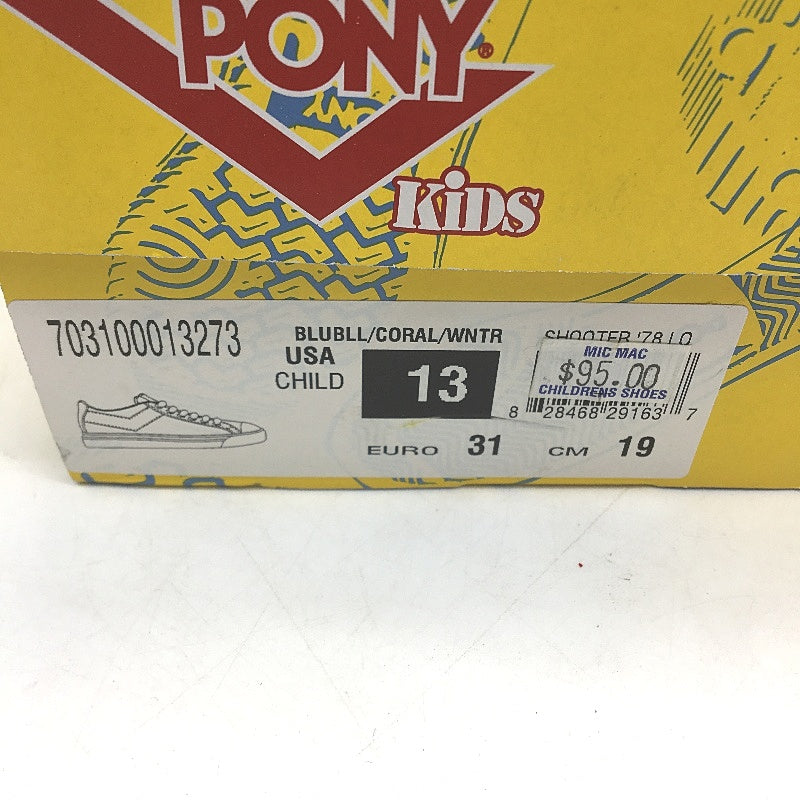 - Pony Kids Blue Coral Shooter 78 Low Cut Suede Sneaker Child Sze US 13 EUR 31 NEW