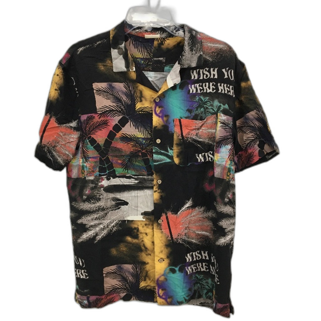 - Insight 'Dark Days' Button-Up Black Patterned Short Sleeve Shirt Mens Size M