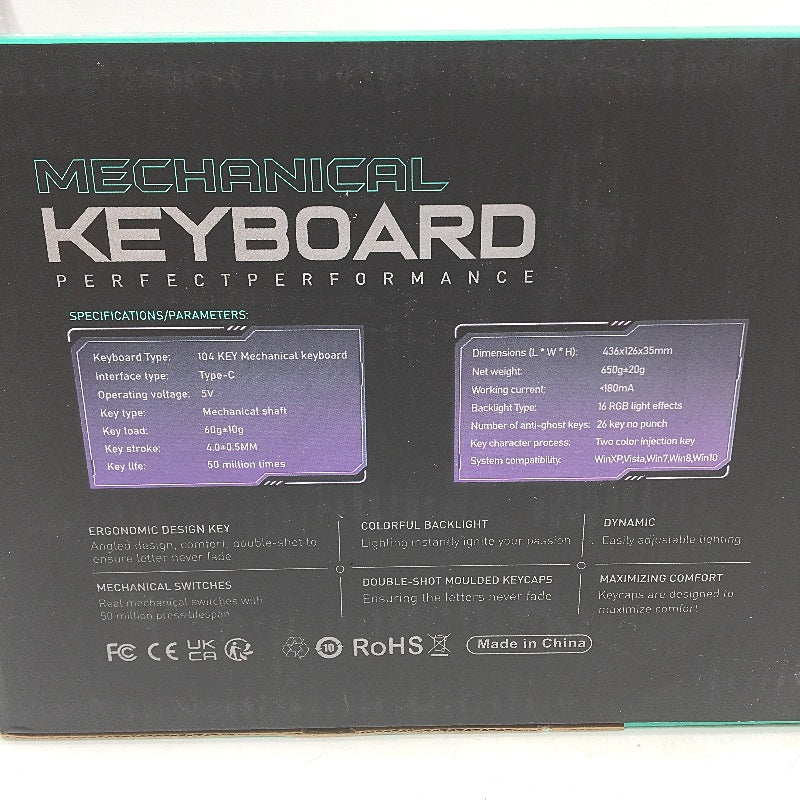 - Kioom Mechanical Keyboard Blue Switches 104 Keys Ergonomic Fast Response NEW