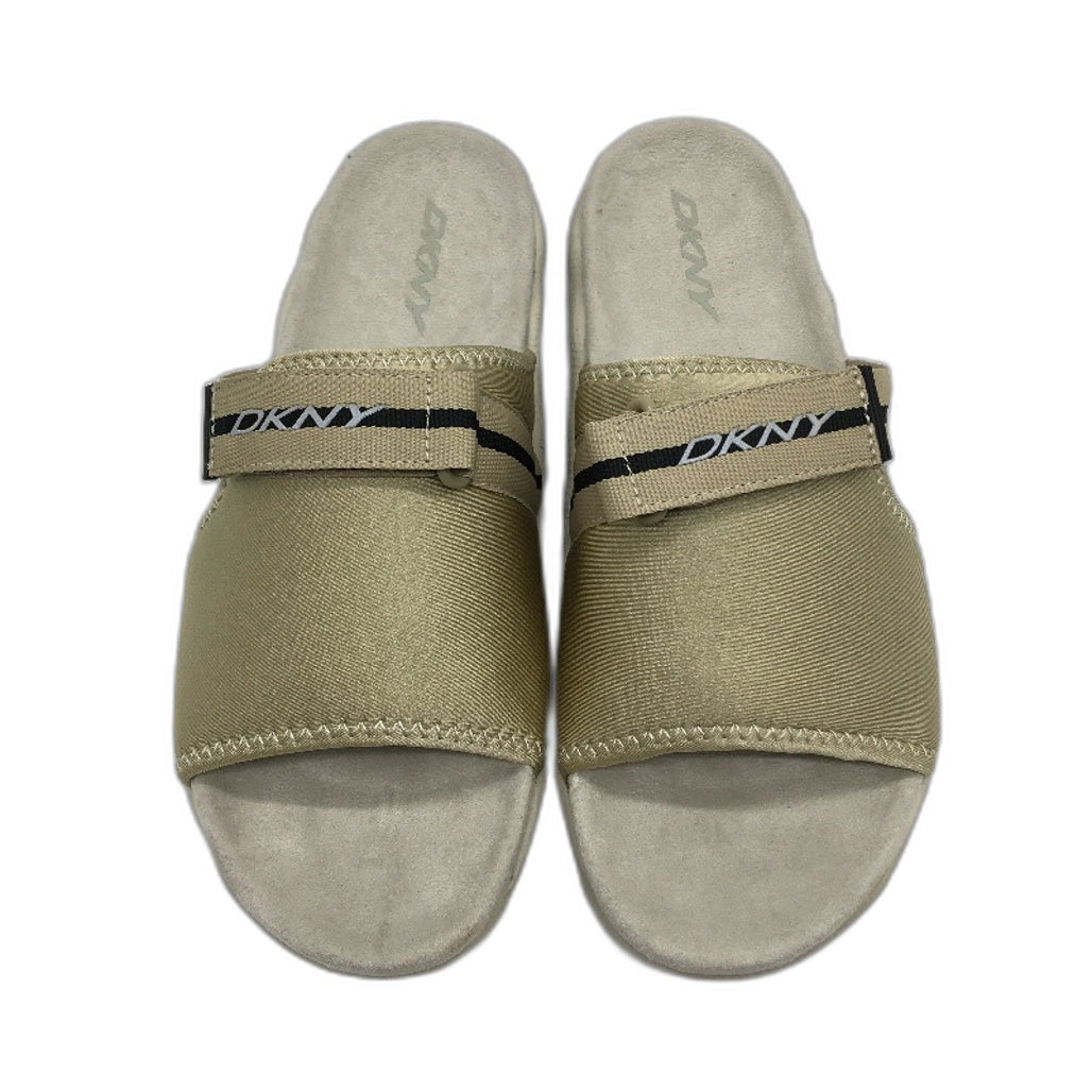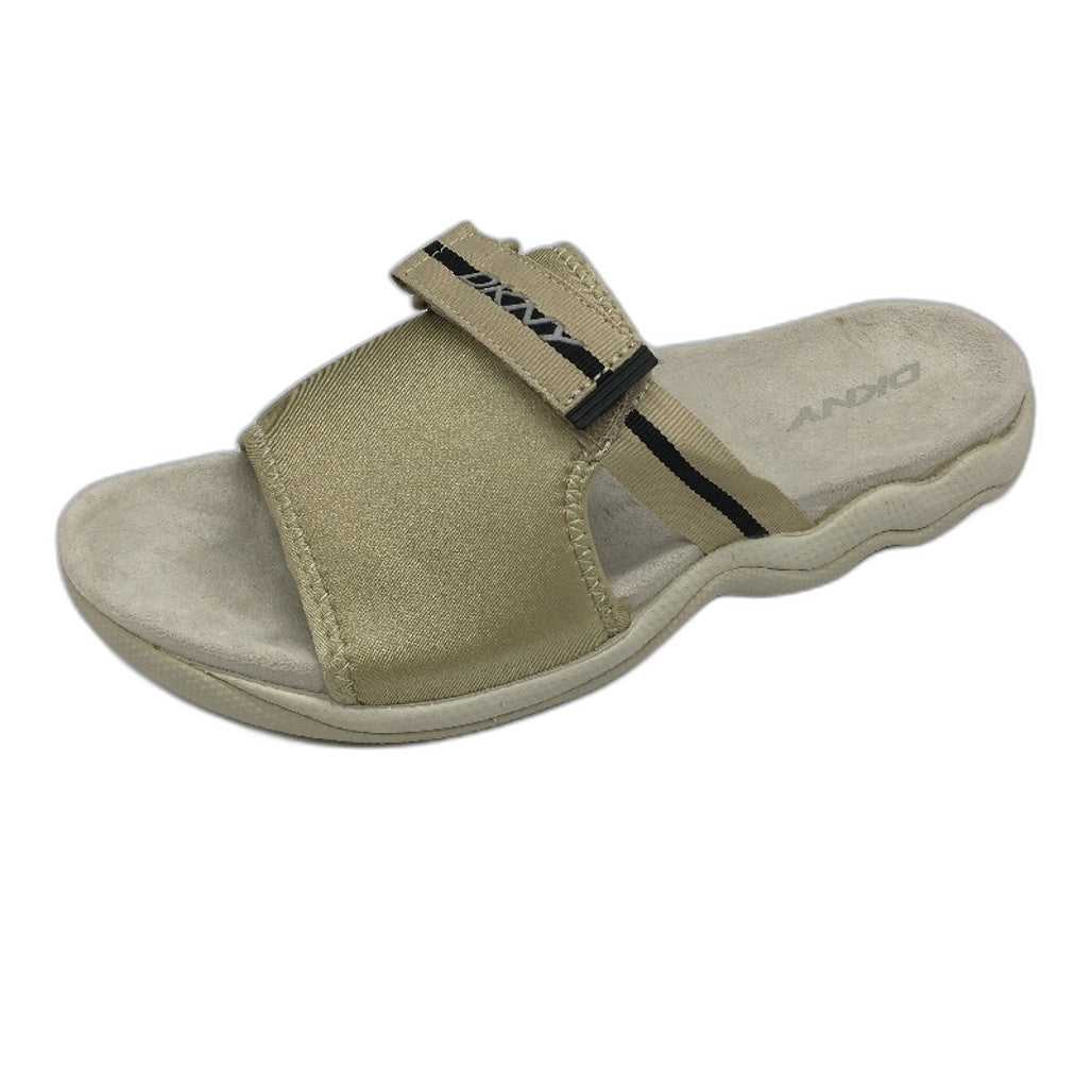 - DKNY Mulberry Lycra Gold Beige Tea Slide Slip On Sandal Shoe Ladies Size 10 NEW