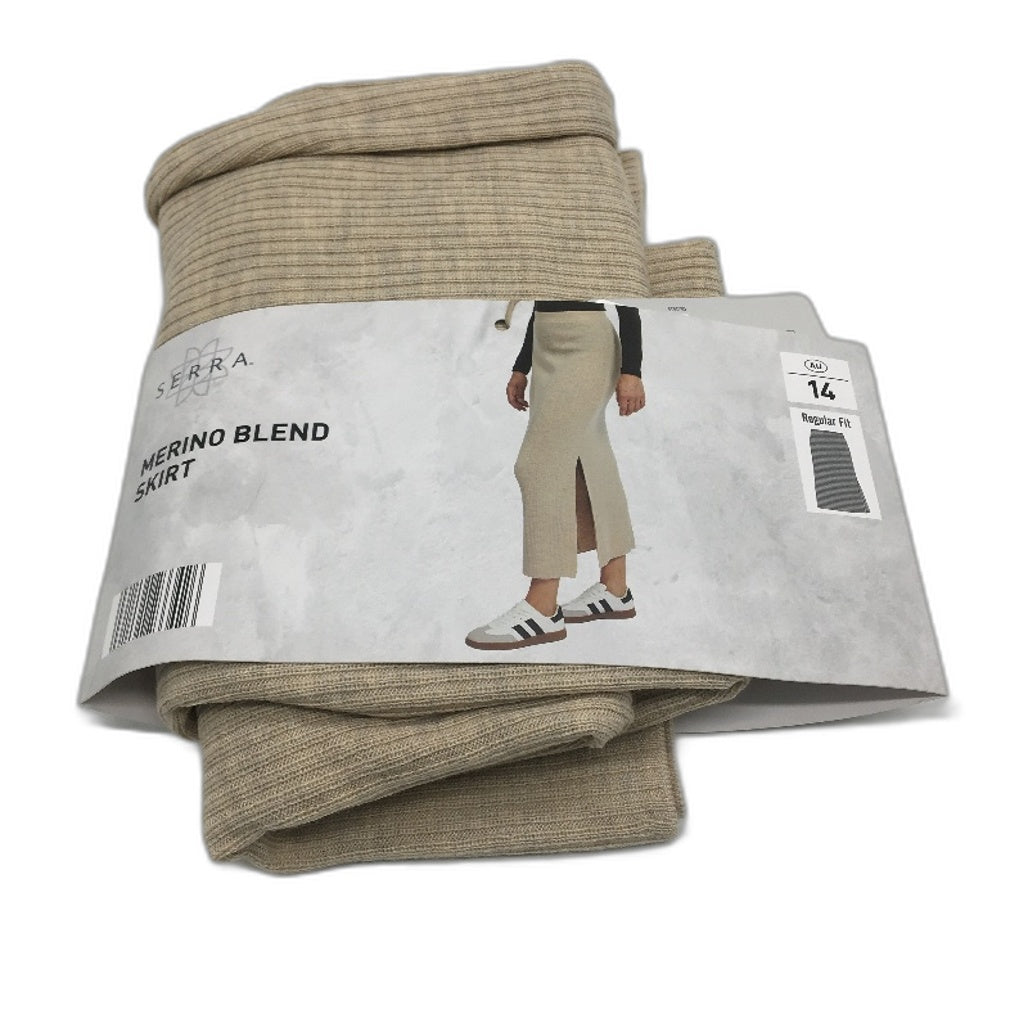 - Serra Taupe Merino Wool Blend Regular Fit Long Skirt Side Split Ladies Sz 14 NEW