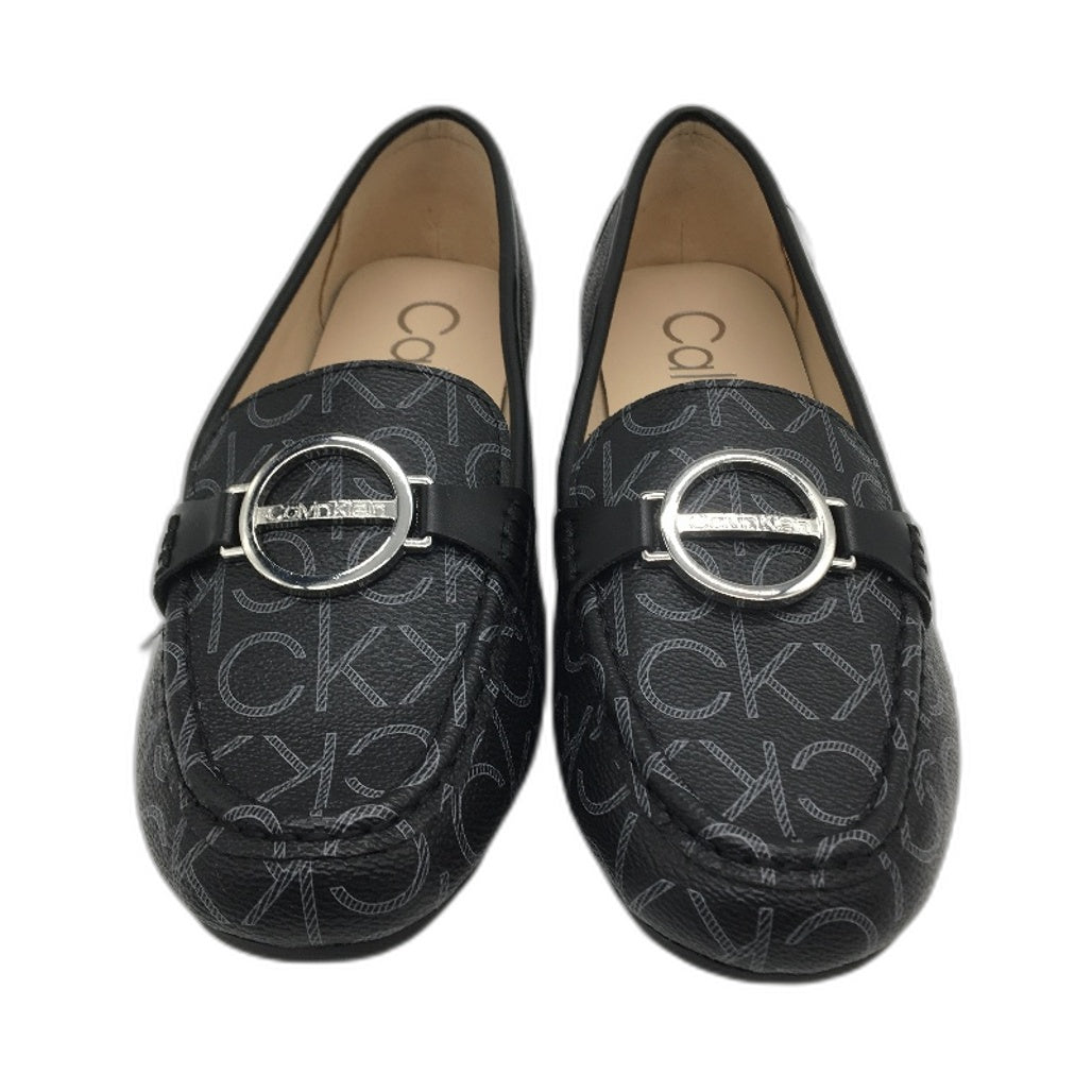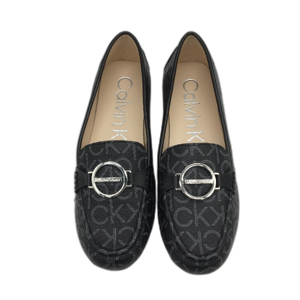 - Calvin Klein Black Faux Leather Layne Logo Flat Shoes Ladies US 7.5 NEW