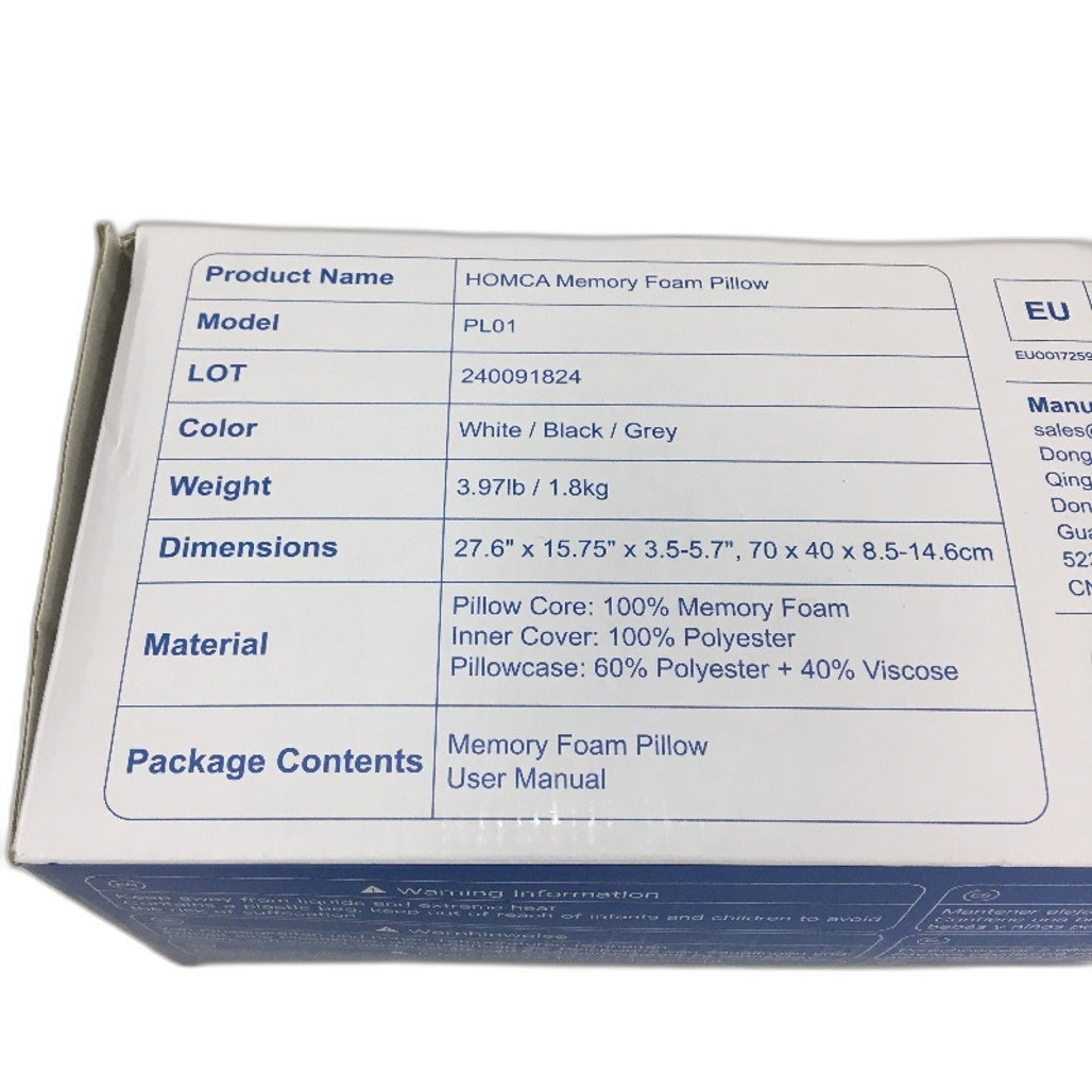 - Homca Breathable Cervical Memory Foam Core Contour Neck Pillow White NEW