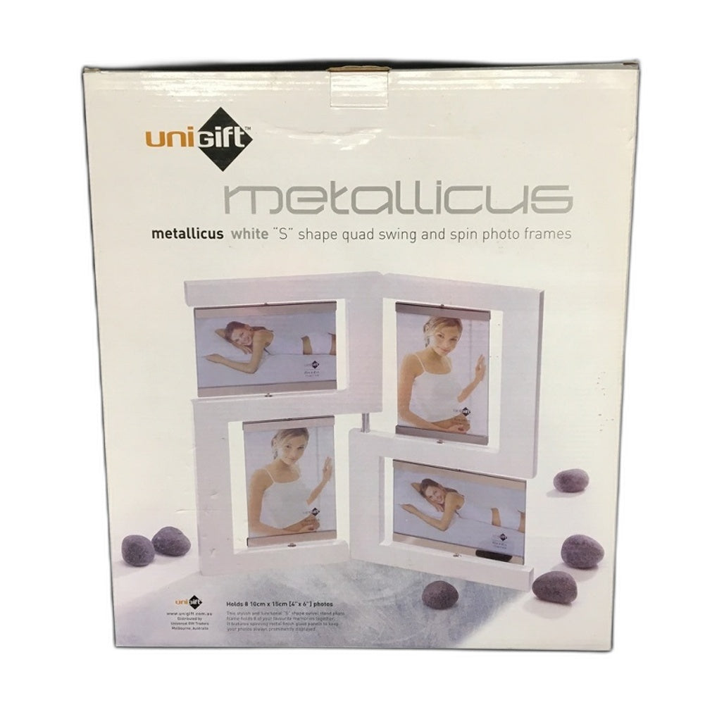 - Unigift Metallicus White 'S' Shape Quad Swing & Spin 8-Photo Frame NEW