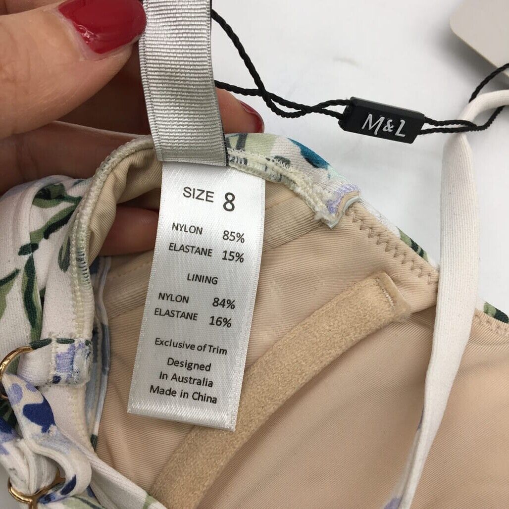 - Monte and Lu Dreamweaver Underwire Floral White Beach Bikini Swim Top Size 8 NEW