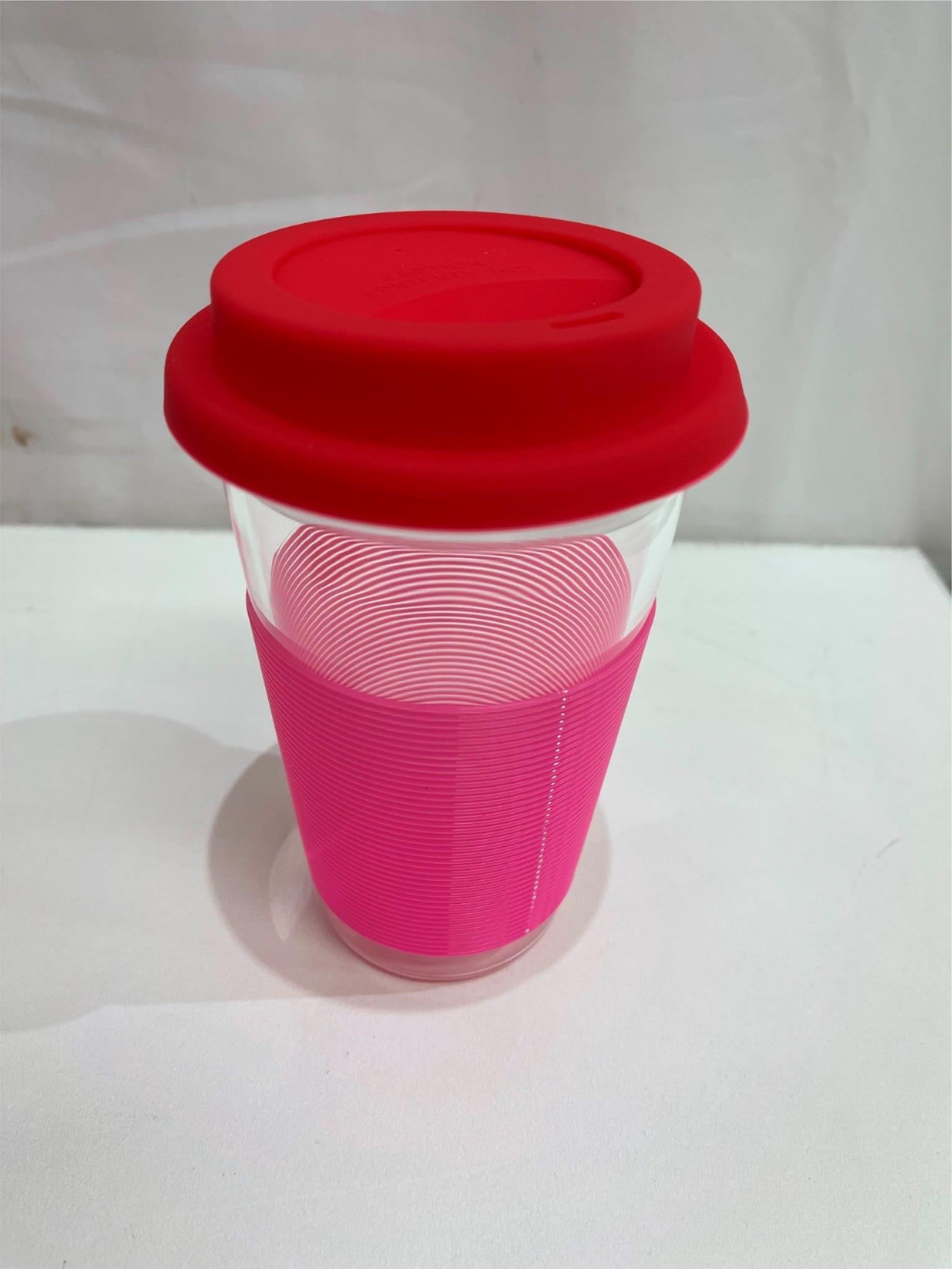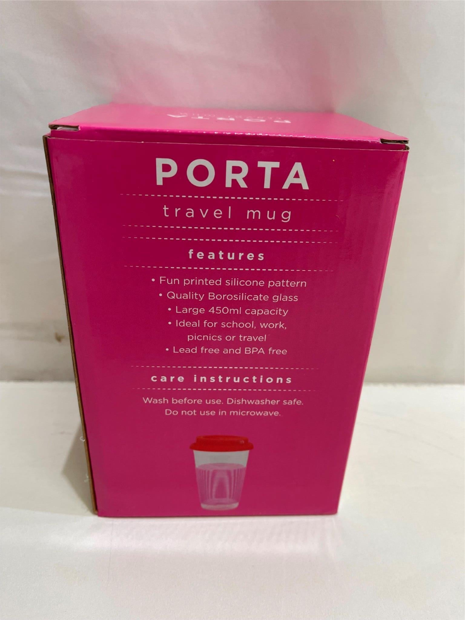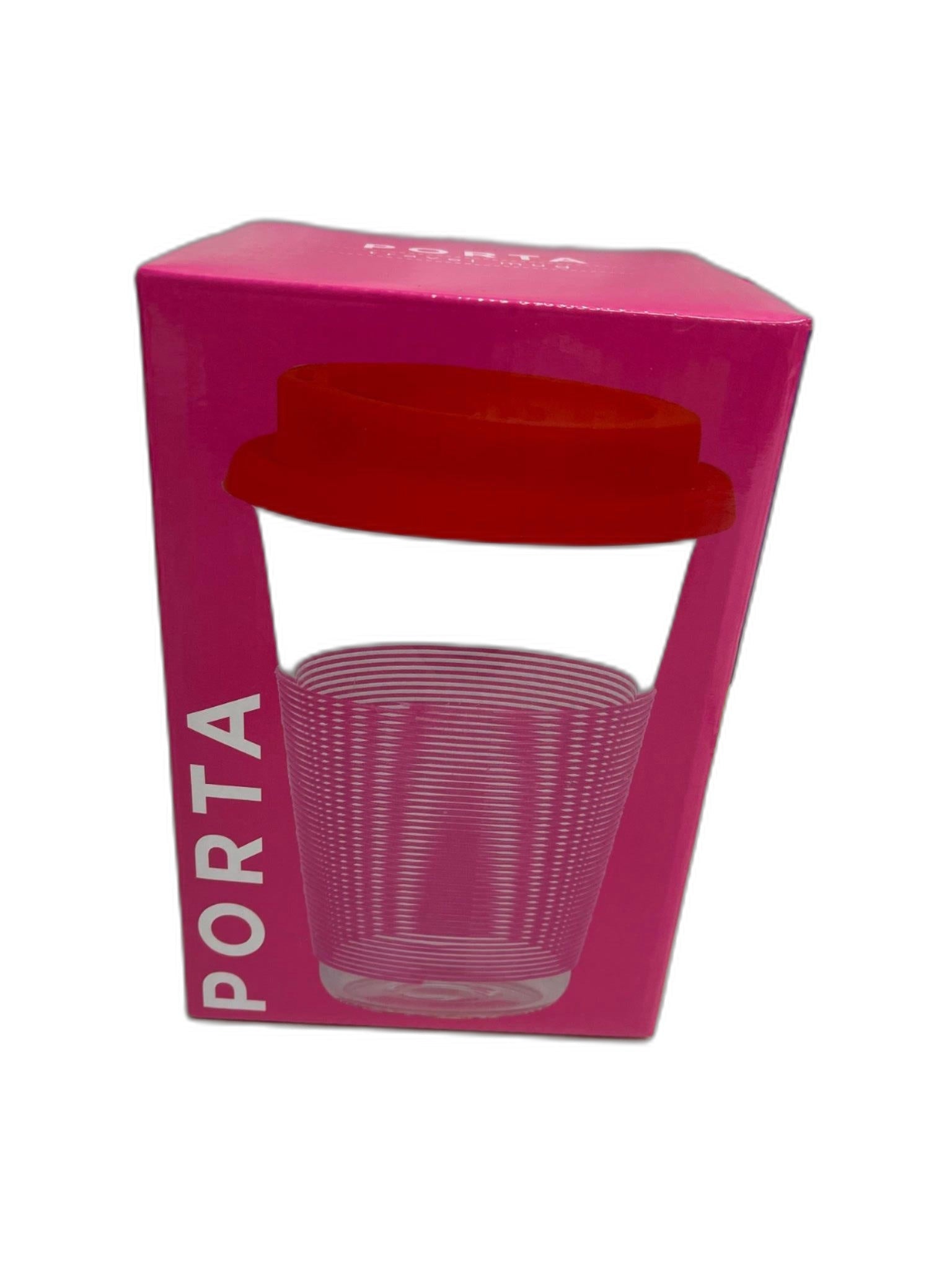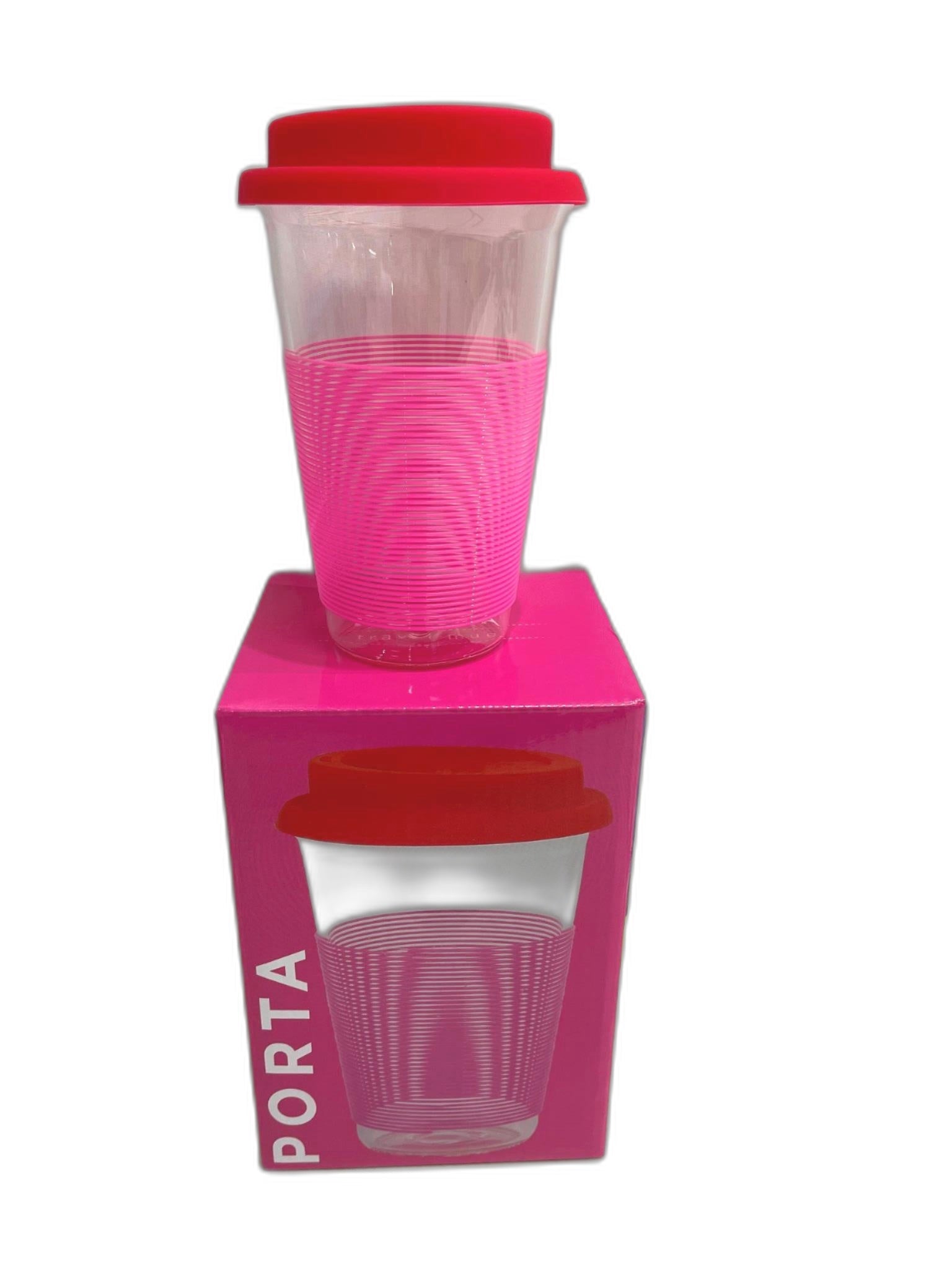 - Porta Summer Fun Pink/Red Glass W/ Silicone Pattern Travel Mug 450Ml NEW