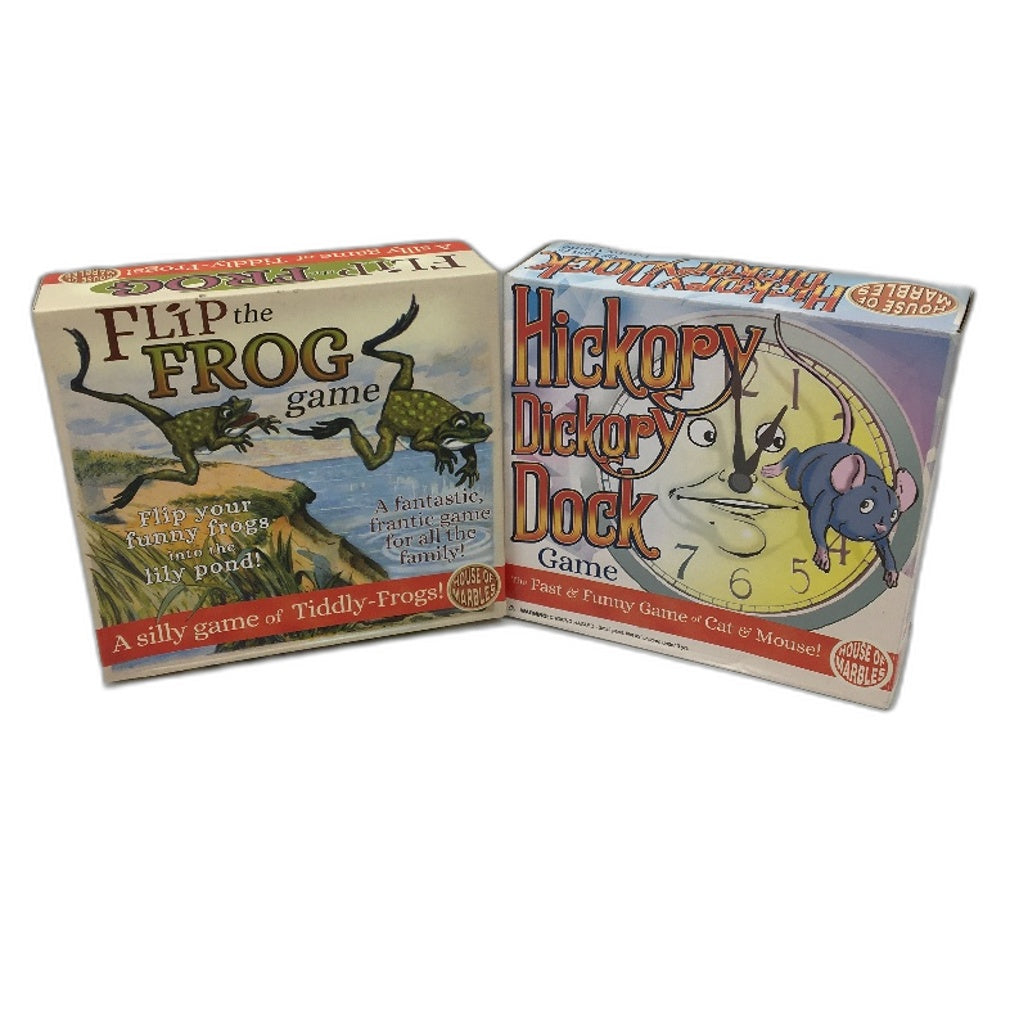 - 2 Pce House of Marbles Childrens Games Hickory Dickory Dock & Flip The Frogs NEW