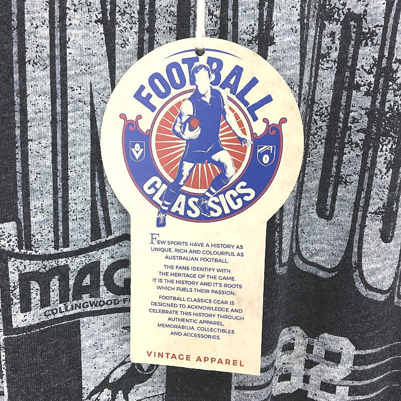 - AFL Footy Classics Retro Collingwood Magpies Grey Collegiate Tee Men Sz M NEW
