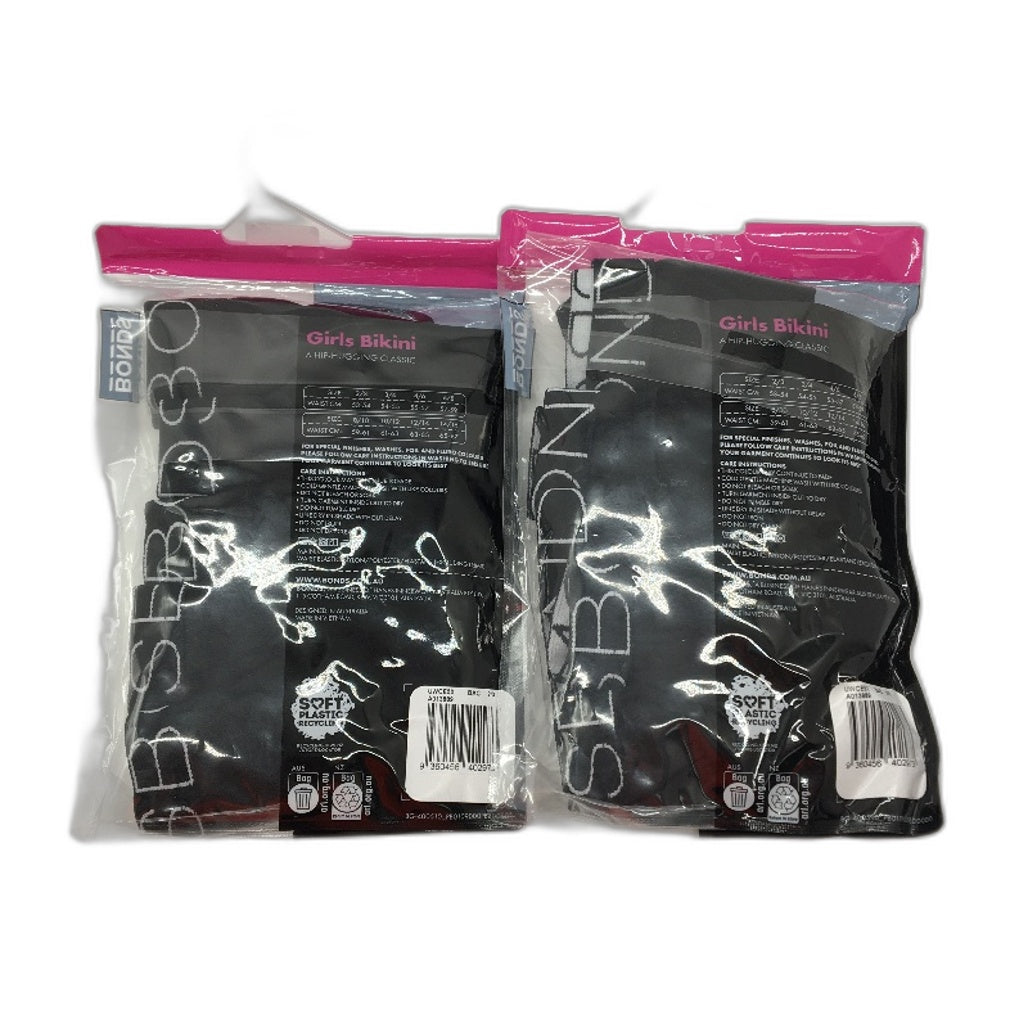 - Bonds 2 x 5Pack Hip Hugging Classic Black Underwear Packs Girls Size 2-3 NEW