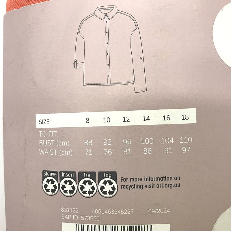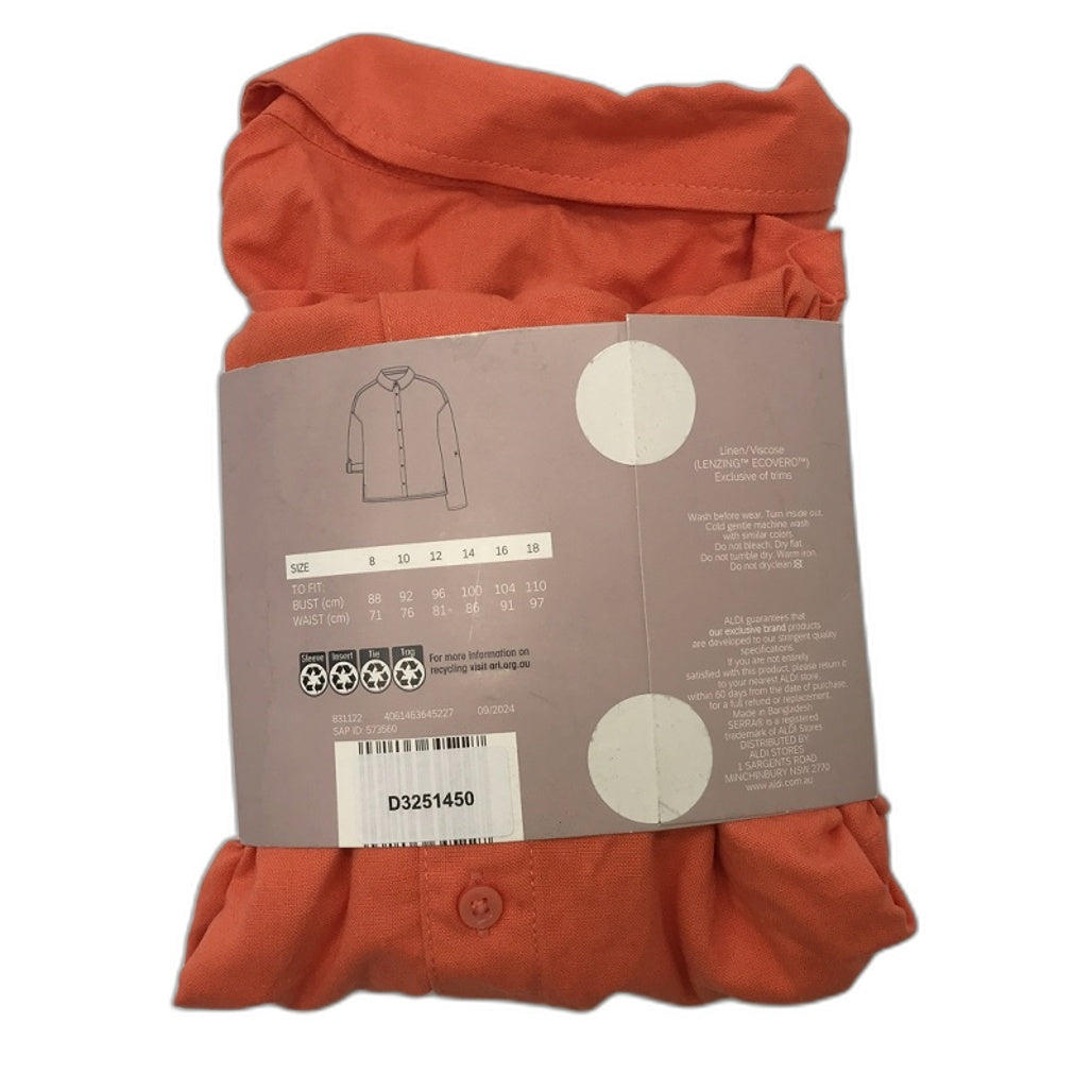 - Serra Light And Cool Linen Blend Coral Cuff Sleeve Shirt Ladies Size 8 NEW