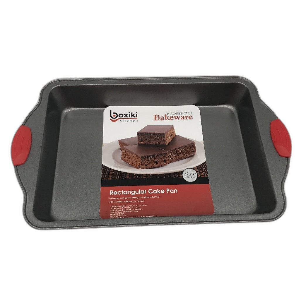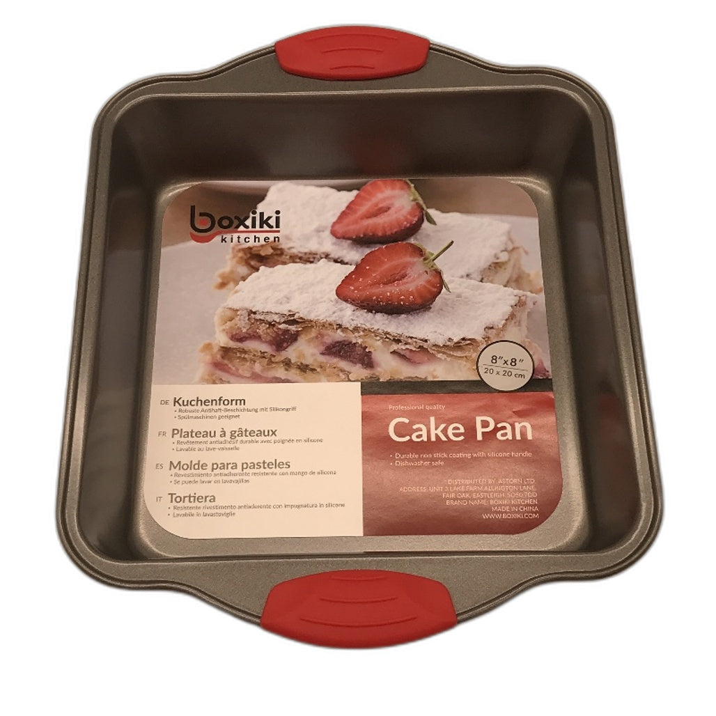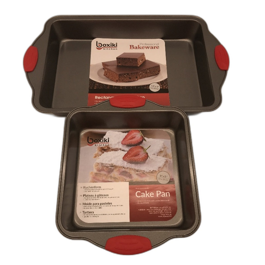 - Boxiki 2 Pce Silver Cake Pans 20x20cm & 33x23cm Non Stick Steel Silicone Grips