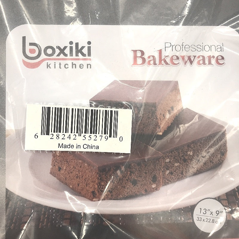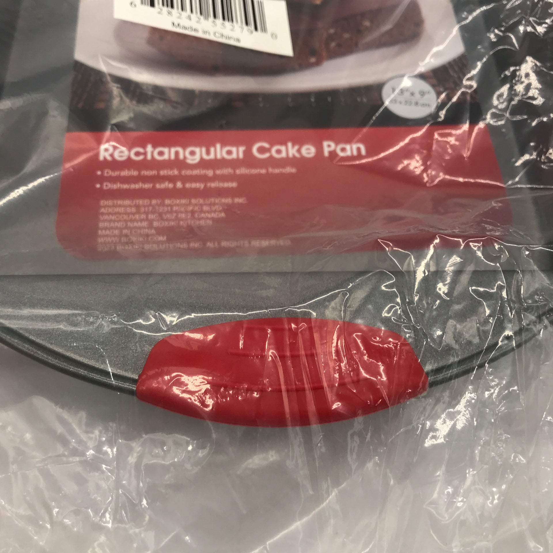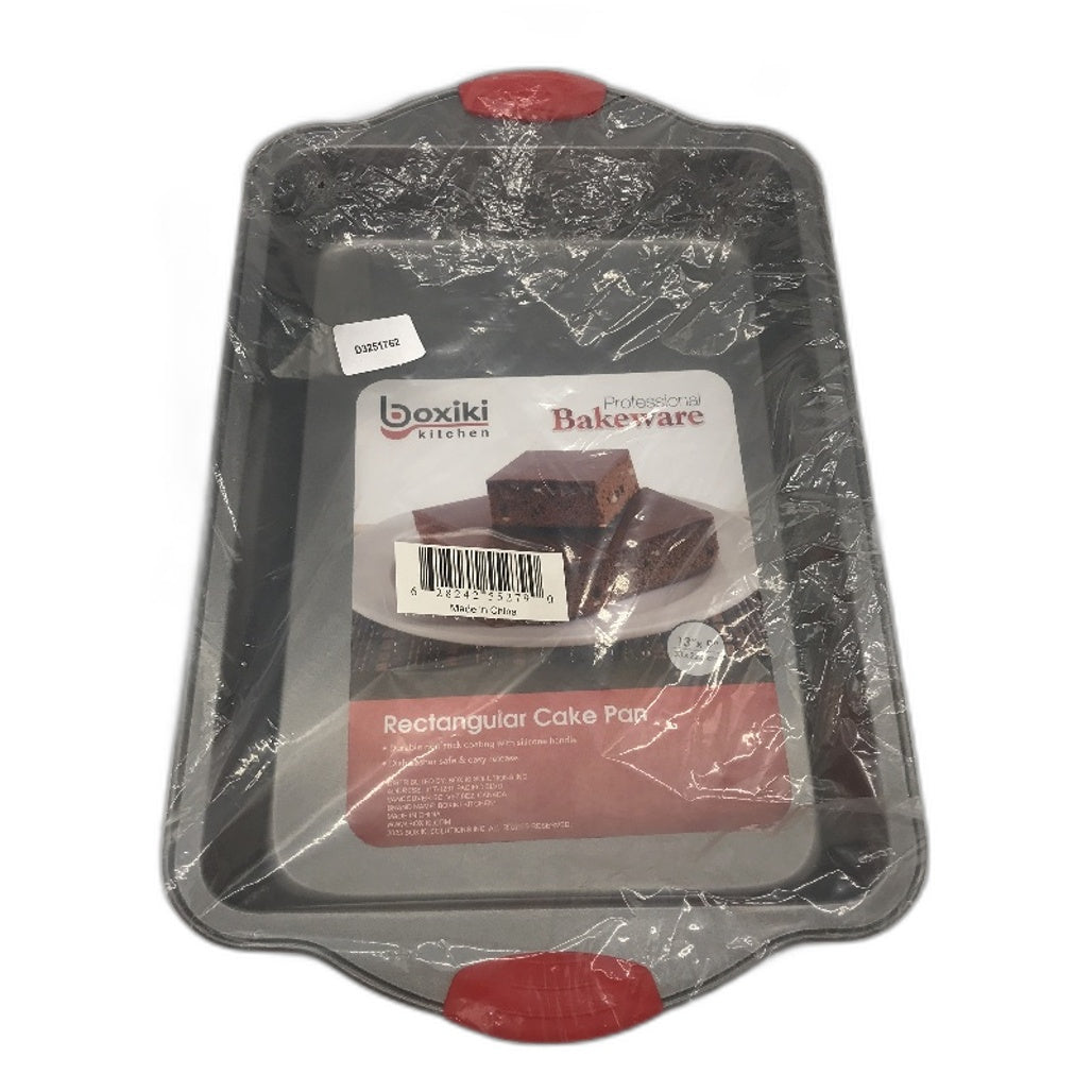 - Boxiki Silver Cake Pan 33x23cm Non Stick Steel with Red Silicone Grips