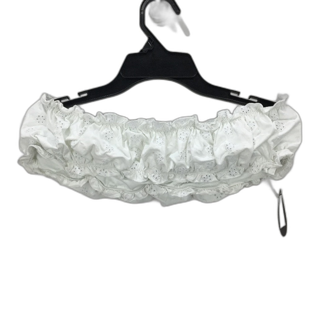 - Subtitled White Tube Stretchy Bather Top Frilly Floral Pattern Ladies Size Large