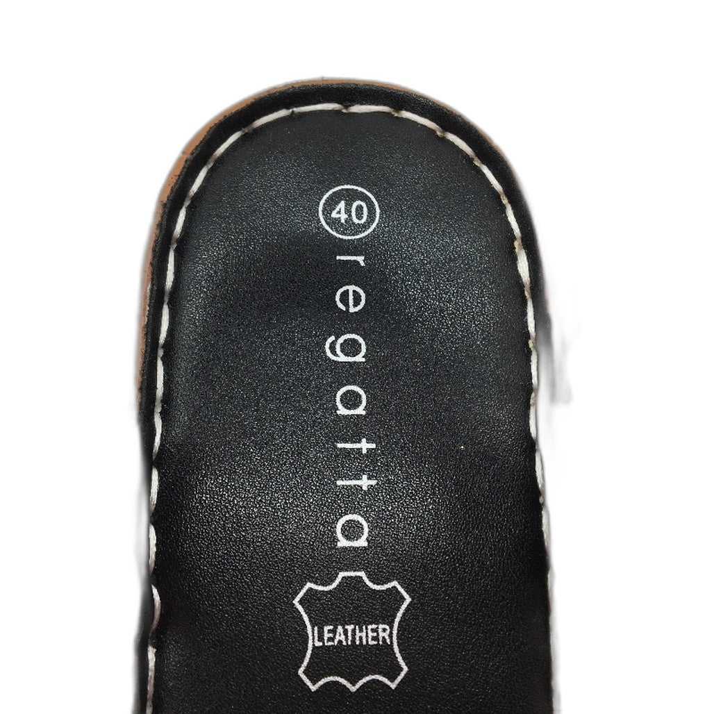- Regatta Black White Leather Wedge Platform Buckled Sandals Ladies Size 9 NEW