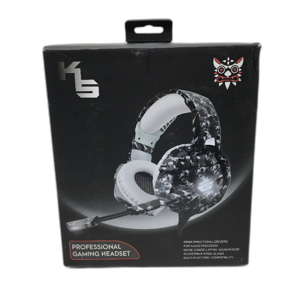 - K5 Professional Gaming Headset Dynamic Driver Padded Grey Camo Headband NEW