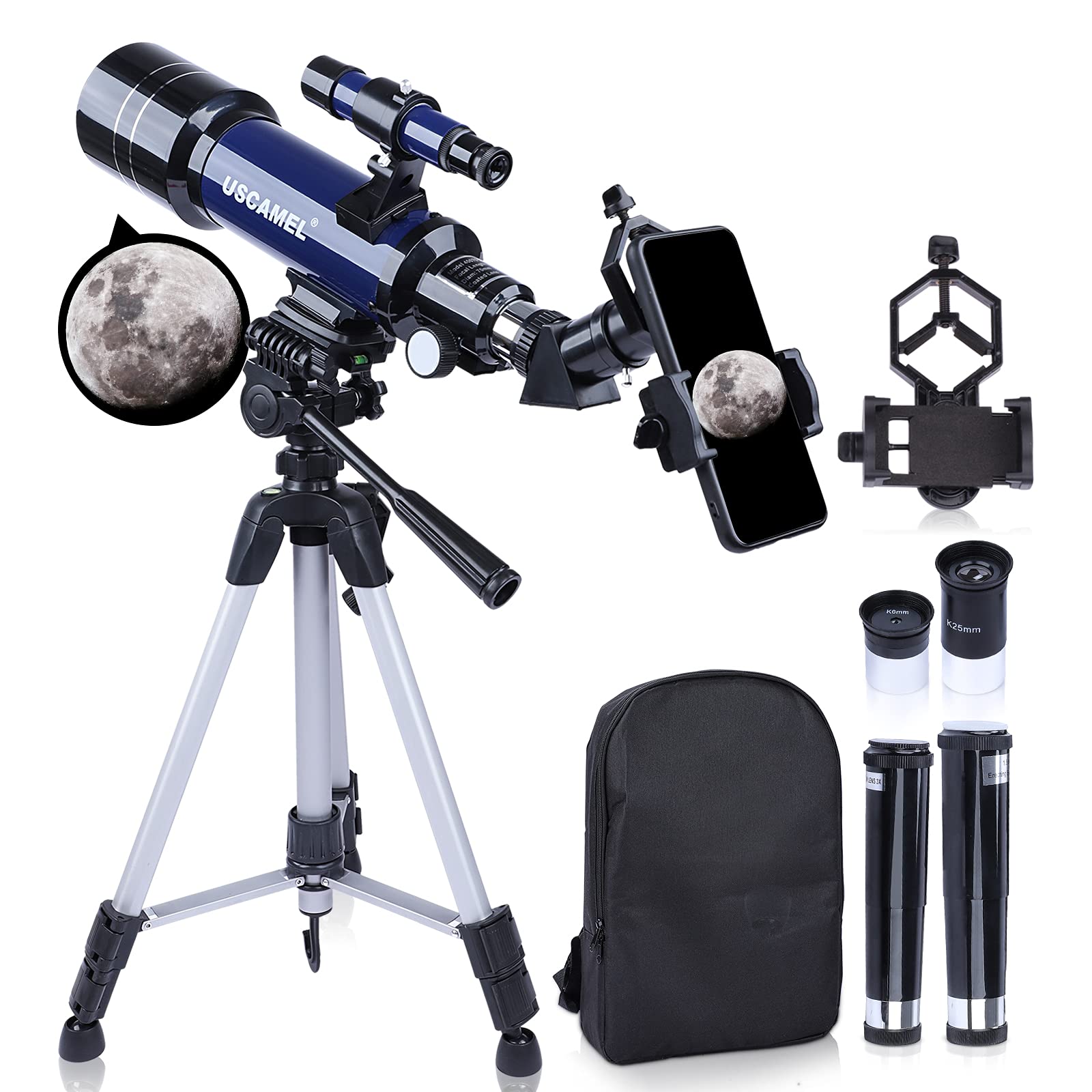 - USCAMEL Refractor Telescope 70/400 AX Optical Glass and Metal Tube in Navy NEW