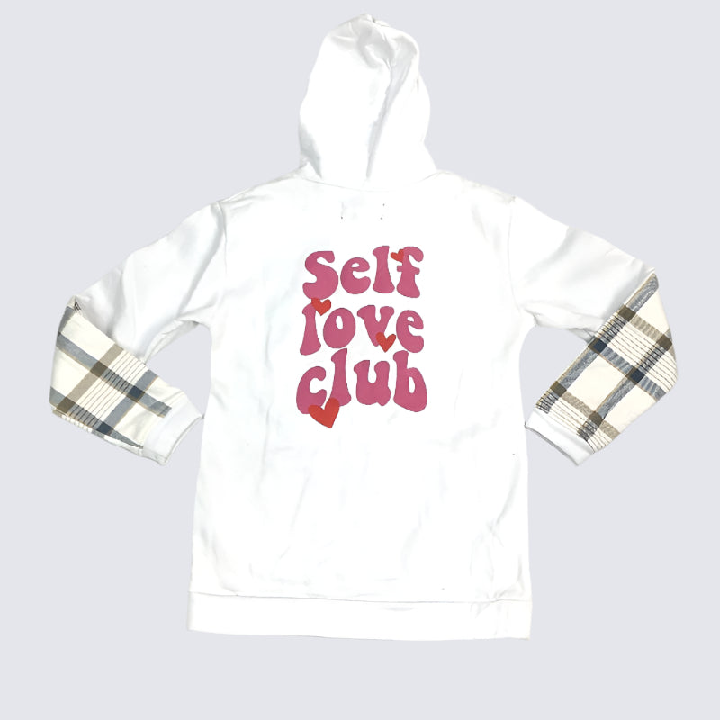 - reWORKED re-UP Handcrafted Upcycled Fabrics White Check Hoodie Jumper Size M