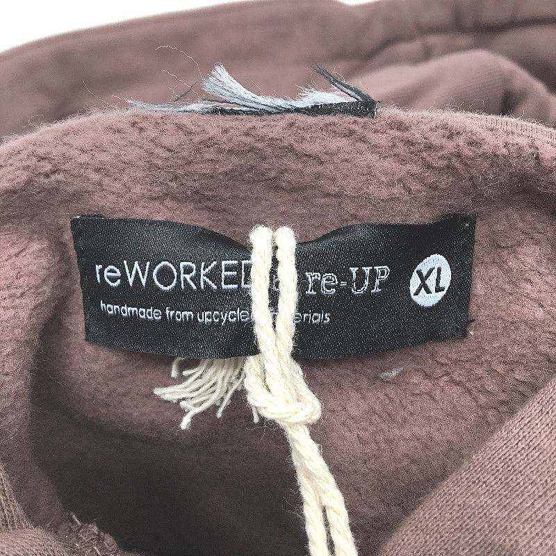 - reWORKED re-UP Handcrafted Upcycled Fabrics Brown Blue Hoodie Jumper Size XL