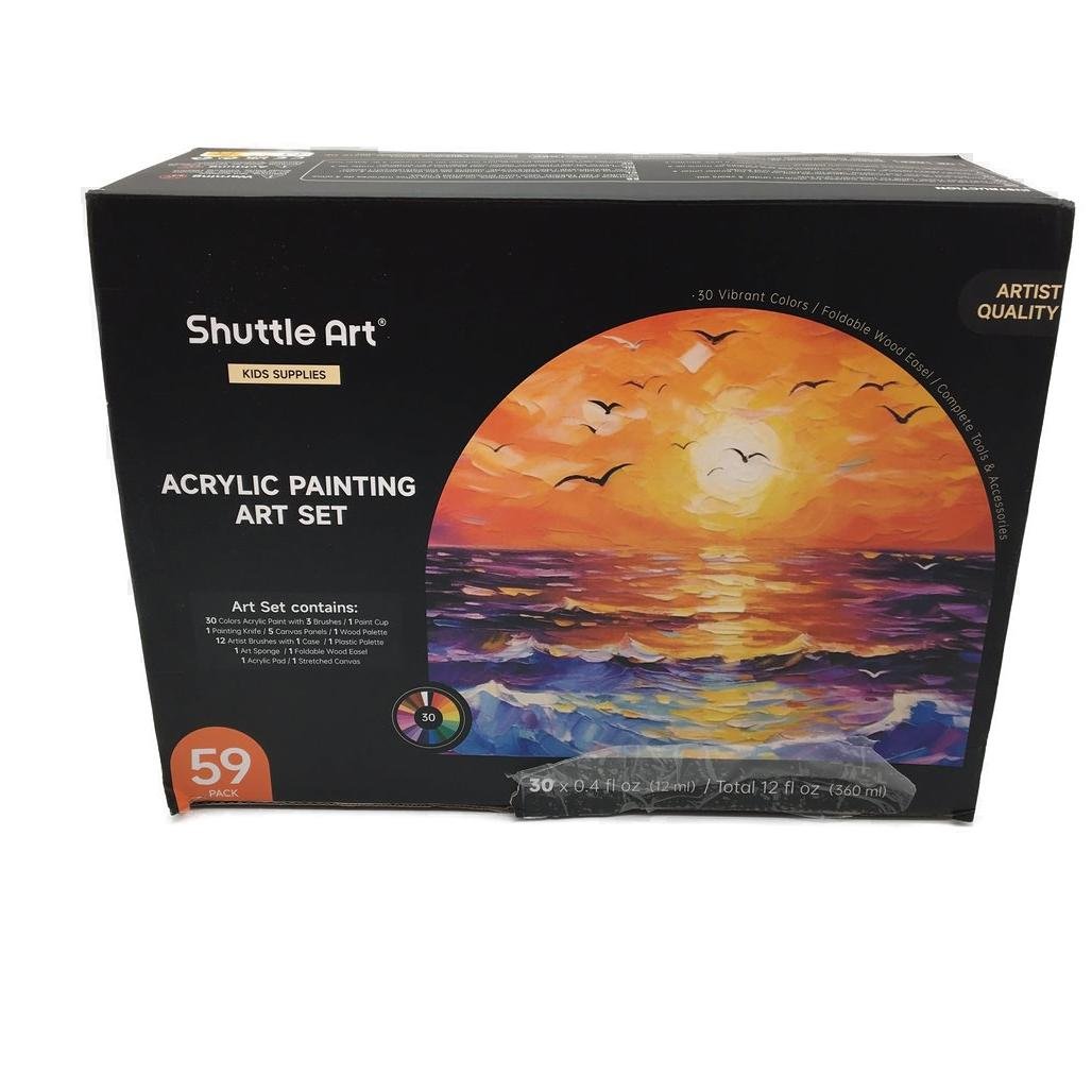 Shuttle Art 59 Piece /30 Colours Acrylic Painting Art Set Inc Easel NEW