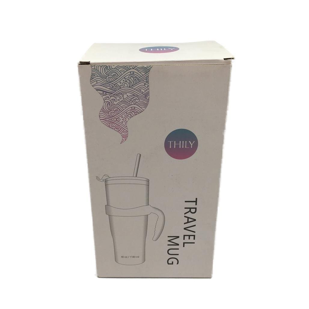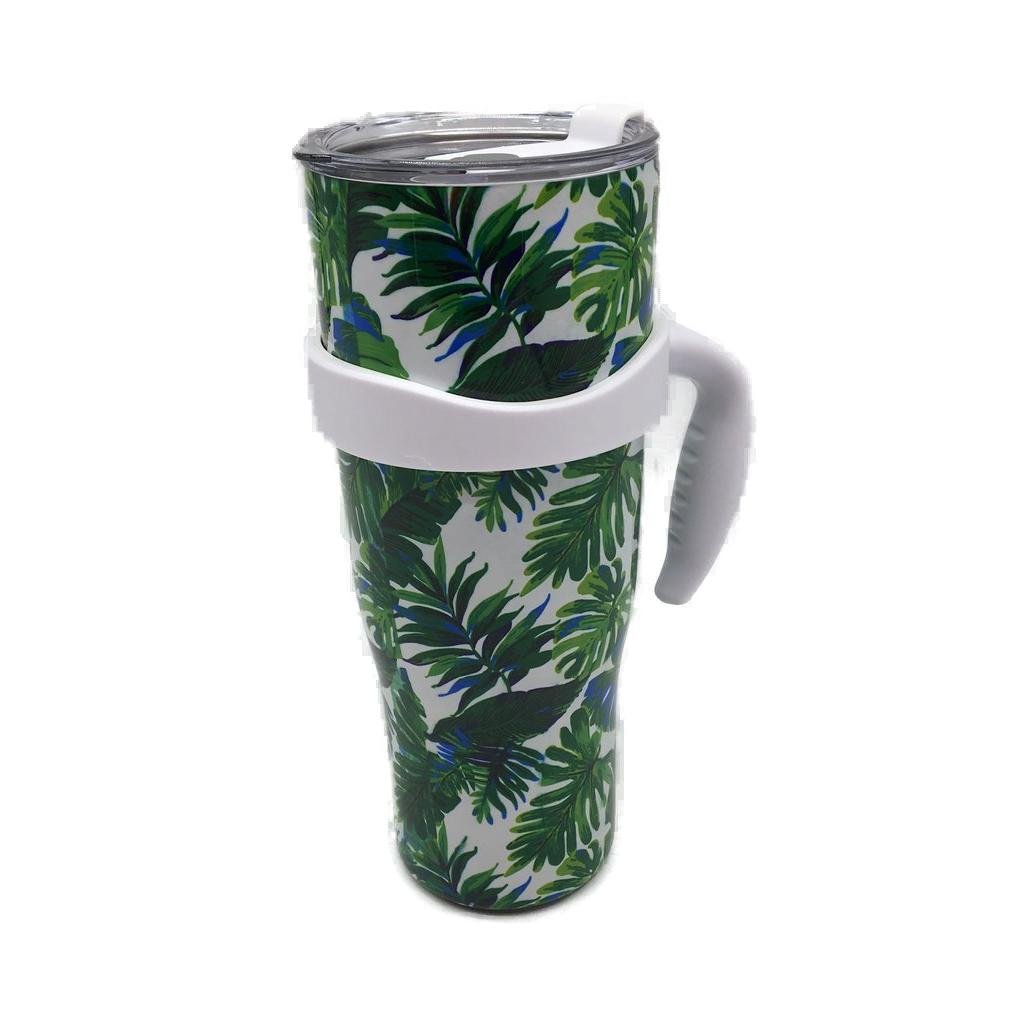 - Thily 1180ml Stainless Steel Green Plants Handle/Straw Travel Mug NEW