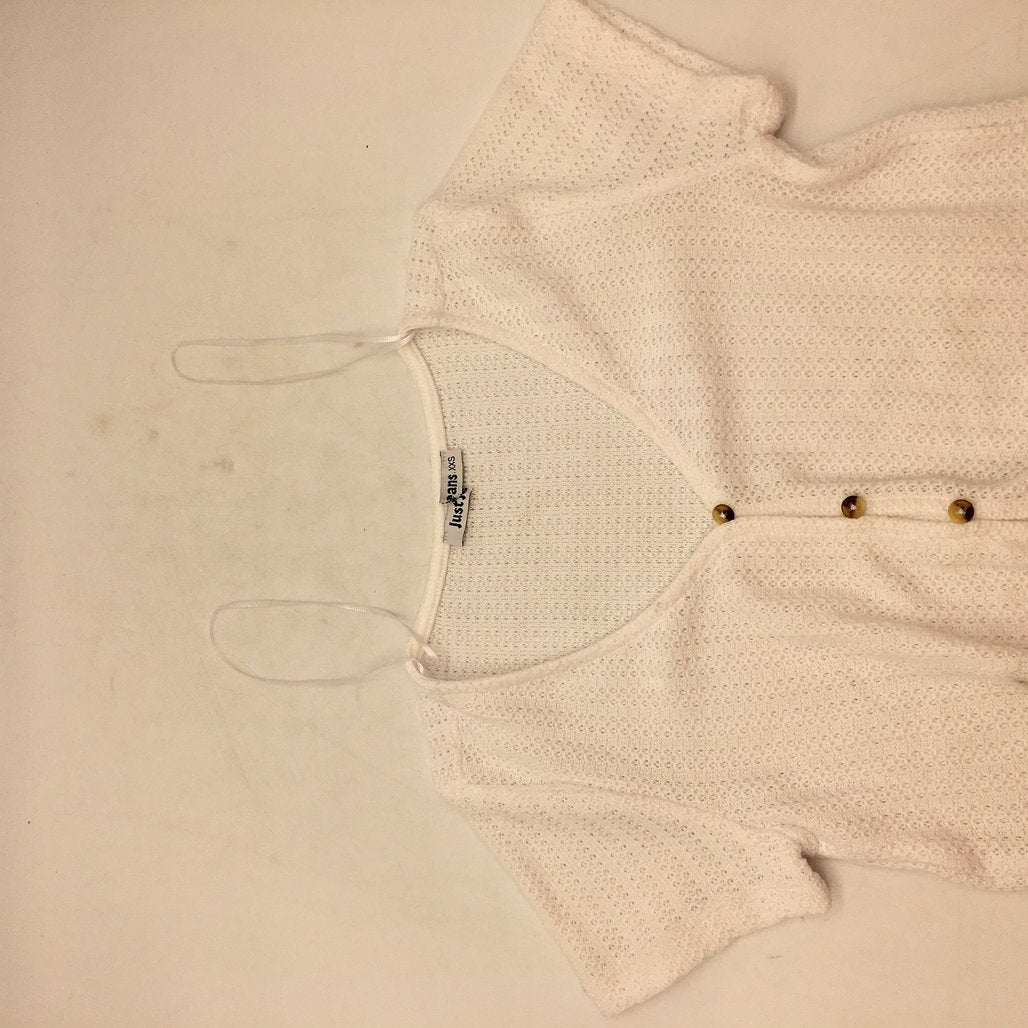 - Just Jeans White Button Up Knit Short Sleeve Shirt Tie Bottom Ladies Size XXS