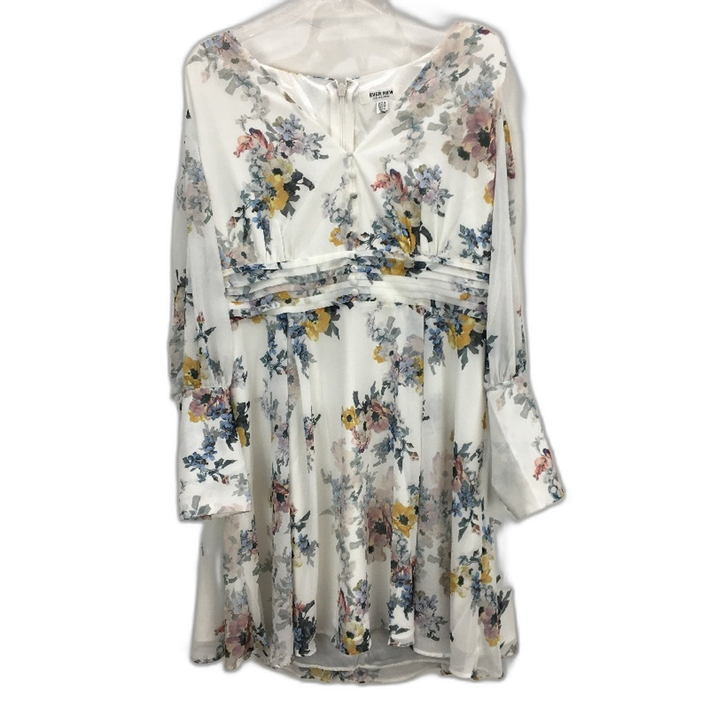 - Ever New White Floral Patterned Long Sleeve Flowy Mini Dress Ladies Size AU 14