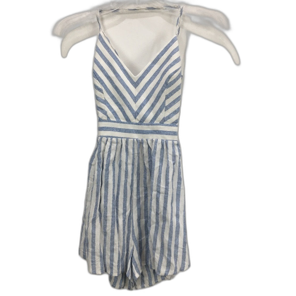- E-Lady Blue & White Tie Back Lightweight Pocketed Mini Jumpsuit Ladies Size AU 6