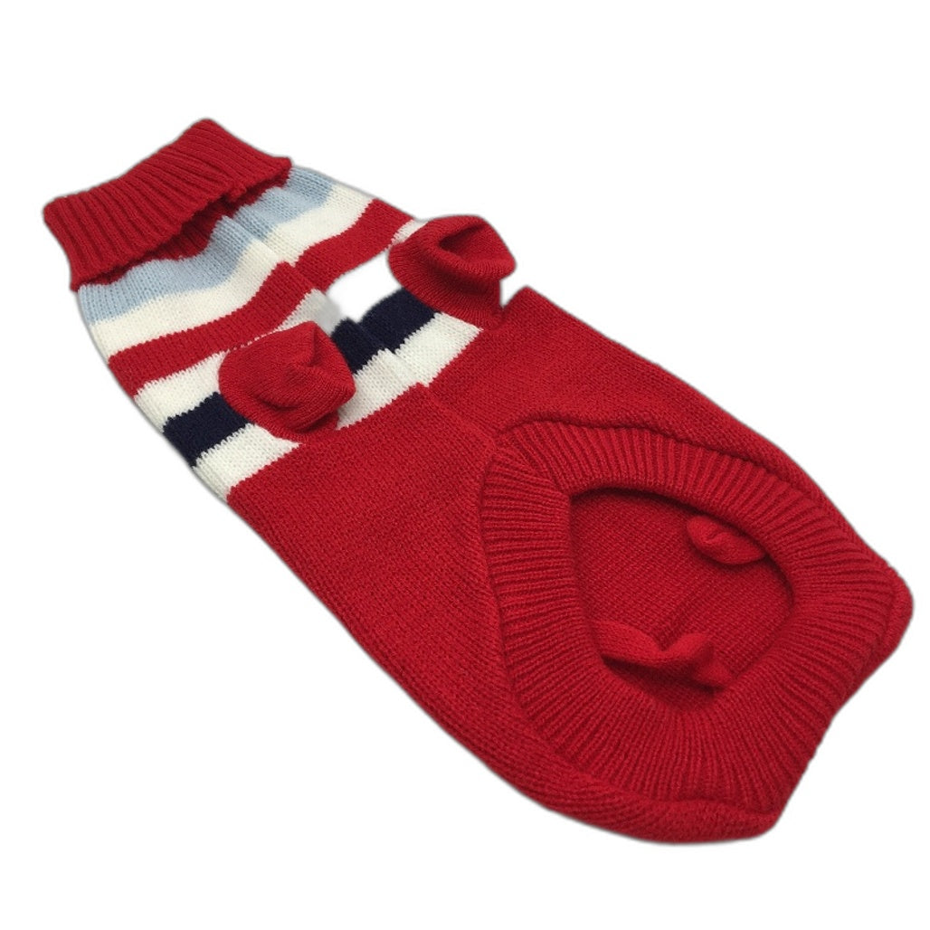 - Milo & Mink Red, White & Blue Knit Striped Turtleneck Winter Dog Jumper Size XS