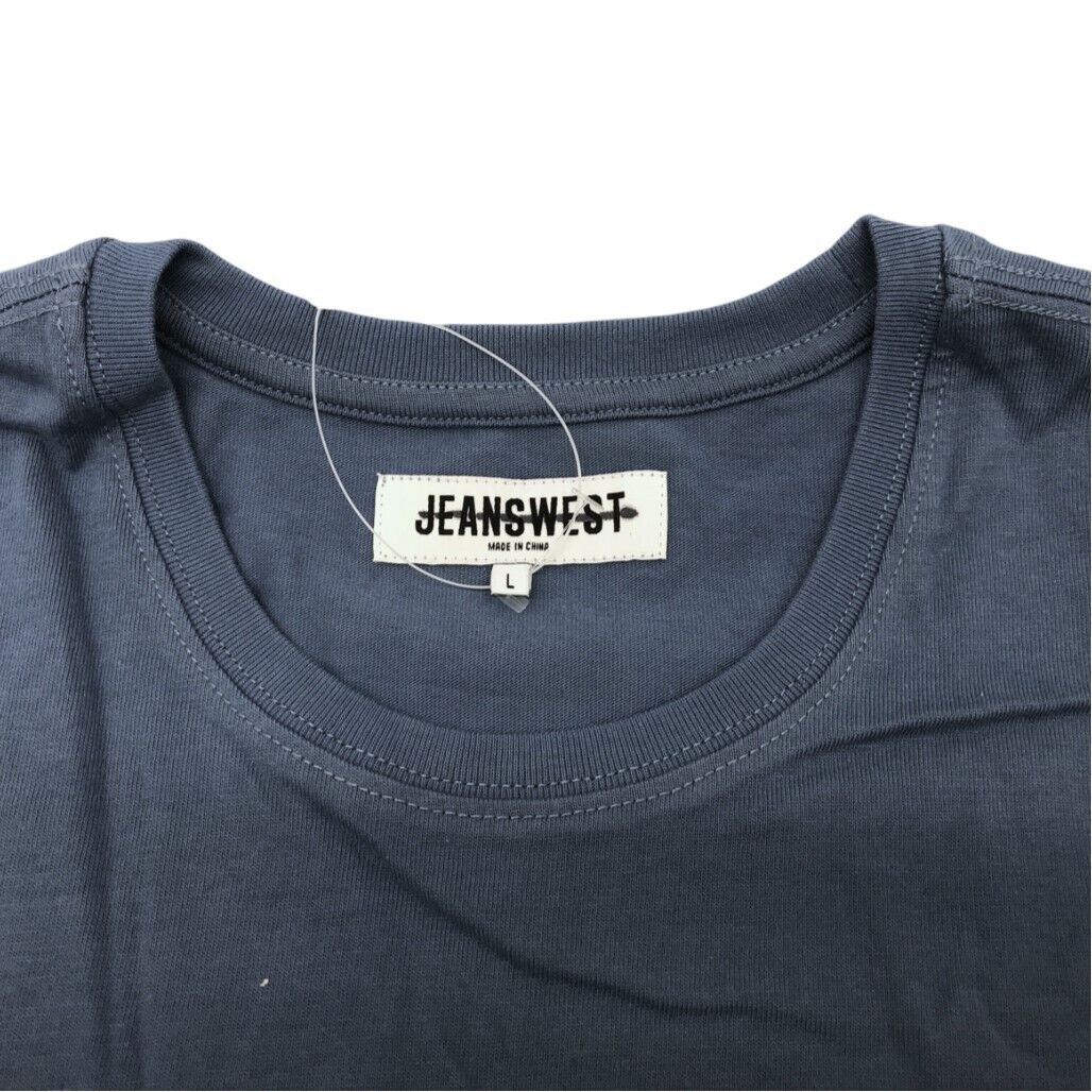 - JEANSWEST S/Sleeve Brooklyn Graphic Print Blue Cotton Tee Mens Size Large NEW