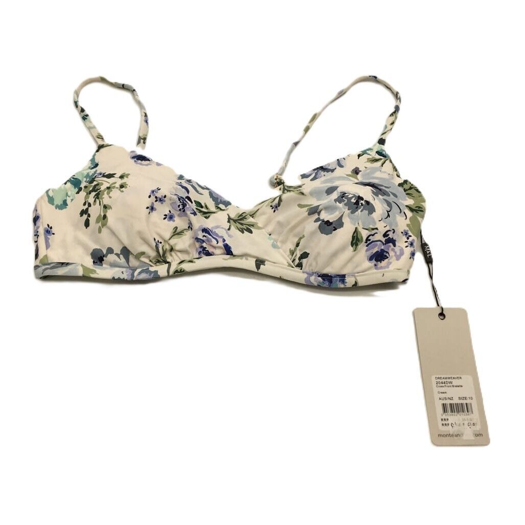 - Monte and Lu Dreamweaver Underwire Floral White Beach Bikini Swim Top Size 8 NEW