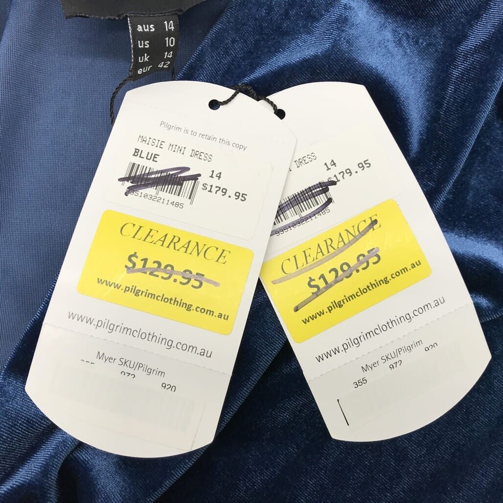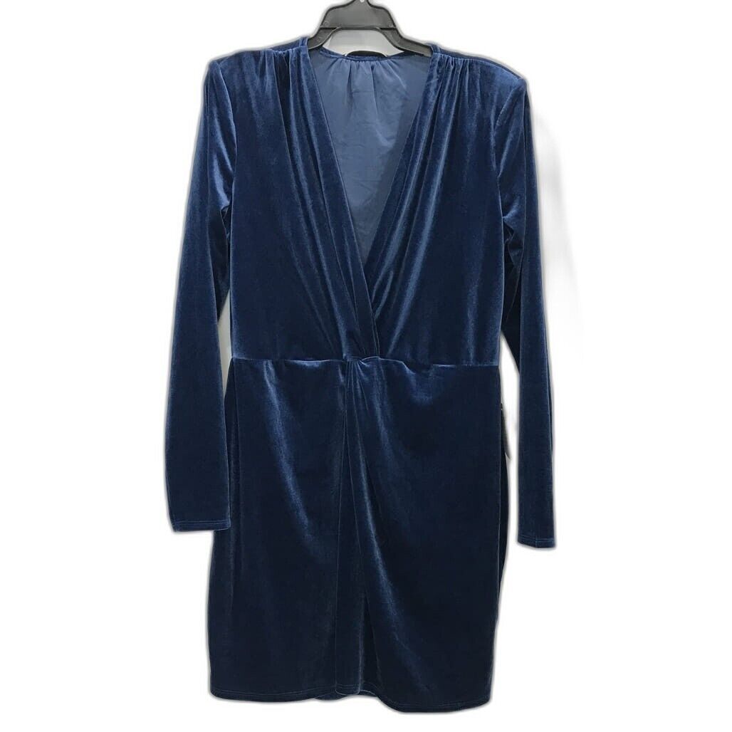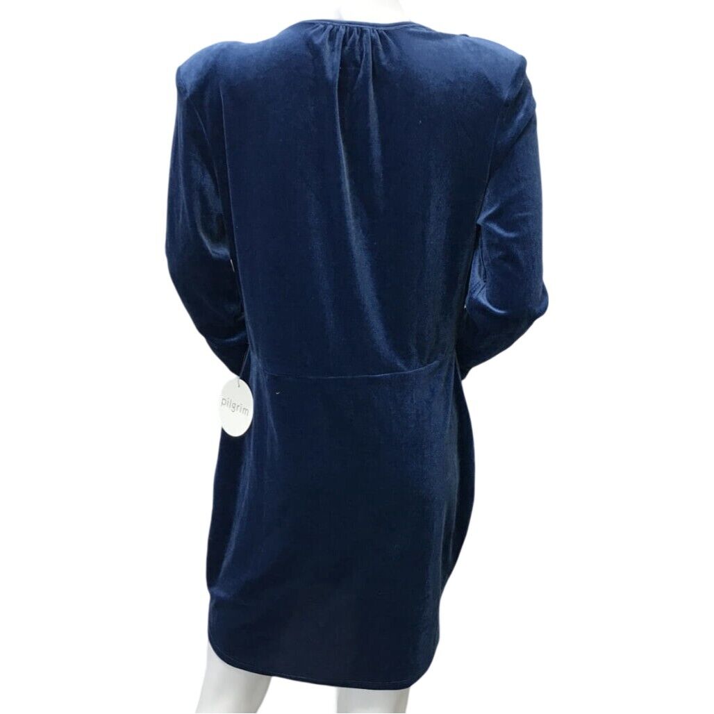 Brand NEW Pilgrim Maisie Padded Shoulder Blue Velvet Mini Dress Women'S Size 14