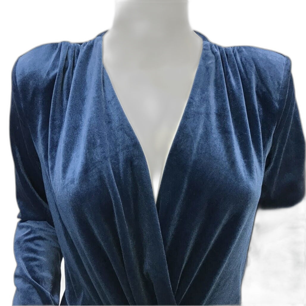 Make a bold fashion statement with this stunning blue velvet mini dress, designed to turn heads with its luxurious texture and padded shoulder details. Perfect for adding a touch of elegance to your wardrobe, this dress combines style and comfort effortlessly. The rich velvet fabric ensures a premium look and feel, while the mini length keeps it chic and modern.