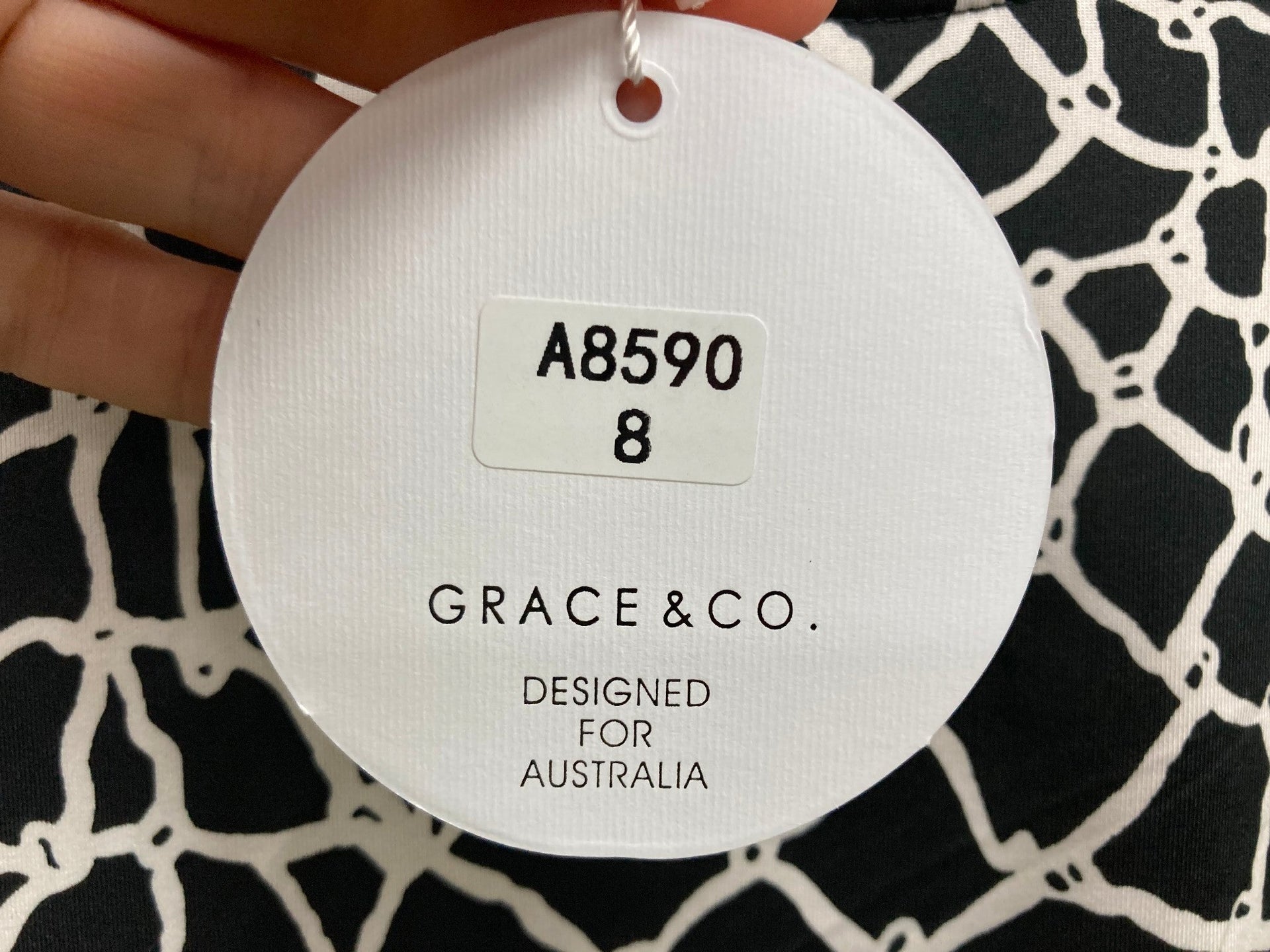 - Grace & Co Stretchy Straight Line Black & White Dress Ladies Sz 8 NEW