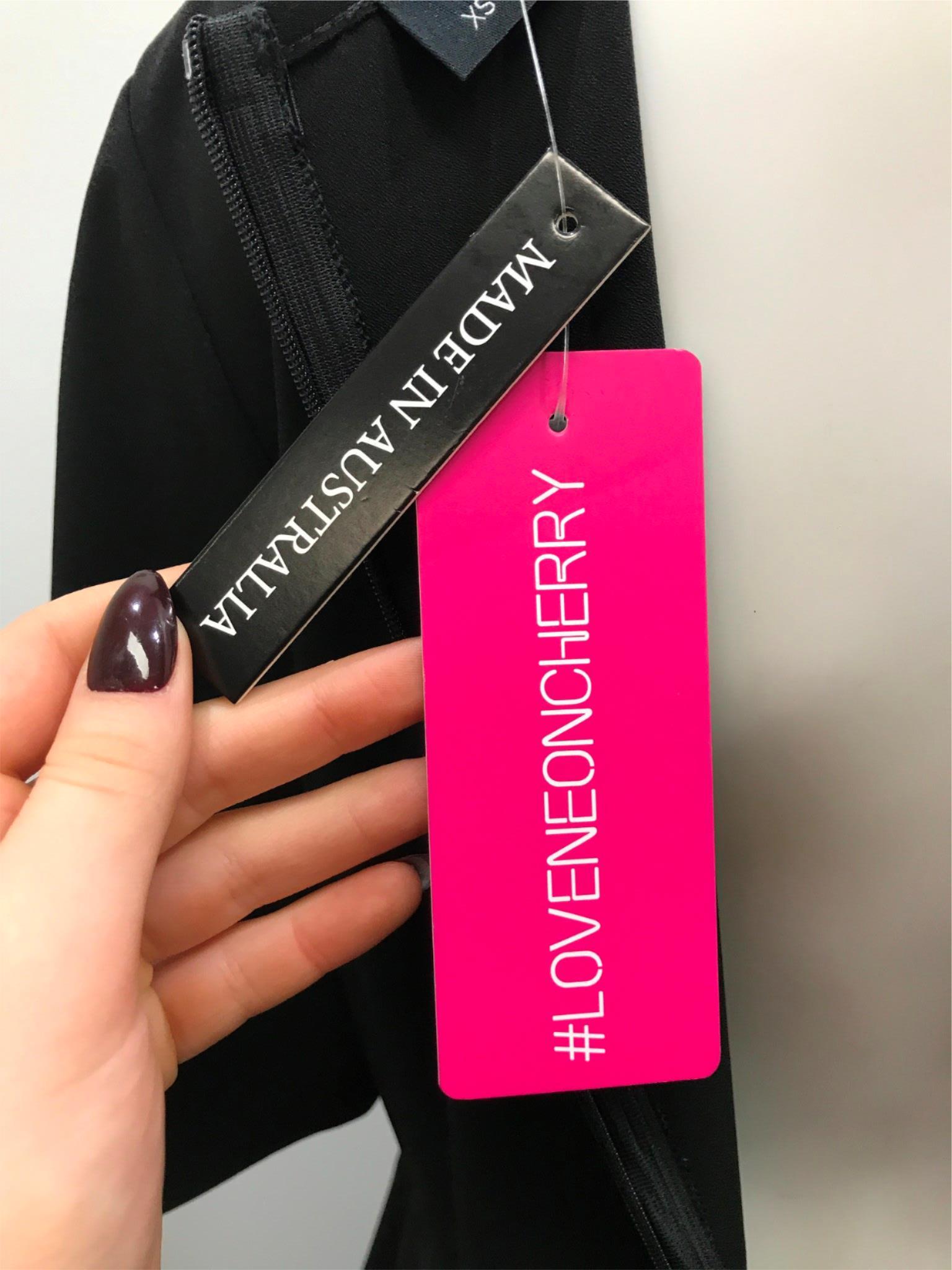 - Neon Cherry Australian Made Black Zip Back Midi Dress Ladies Size Xs NEW