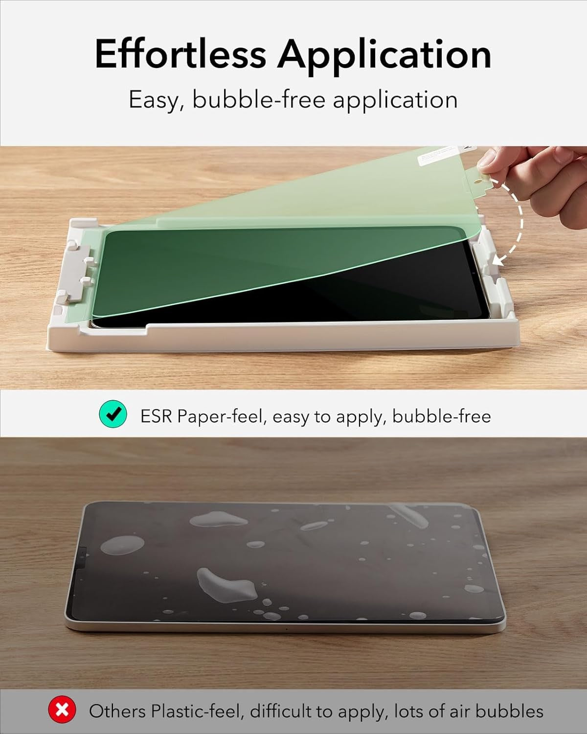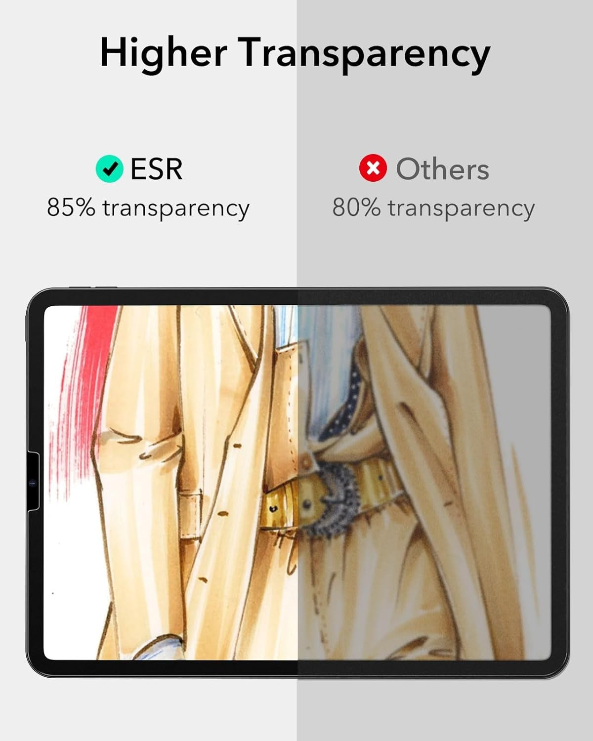 Transform your iPad experience with the ESR Paper-Feel Screen Protector, designed for iPad Air 5/iPad Air 4 (2022/2020, 10.9 Inch) and iPad Pro 11 (2022/2021/2020). Enjoy writing and drawing like you're using paper with this matte polymer protector, ensuring compatibility with Face ID and Pencil. This 2 pack offers excellent value for those who want to maintain the clarity and feel of their screen.