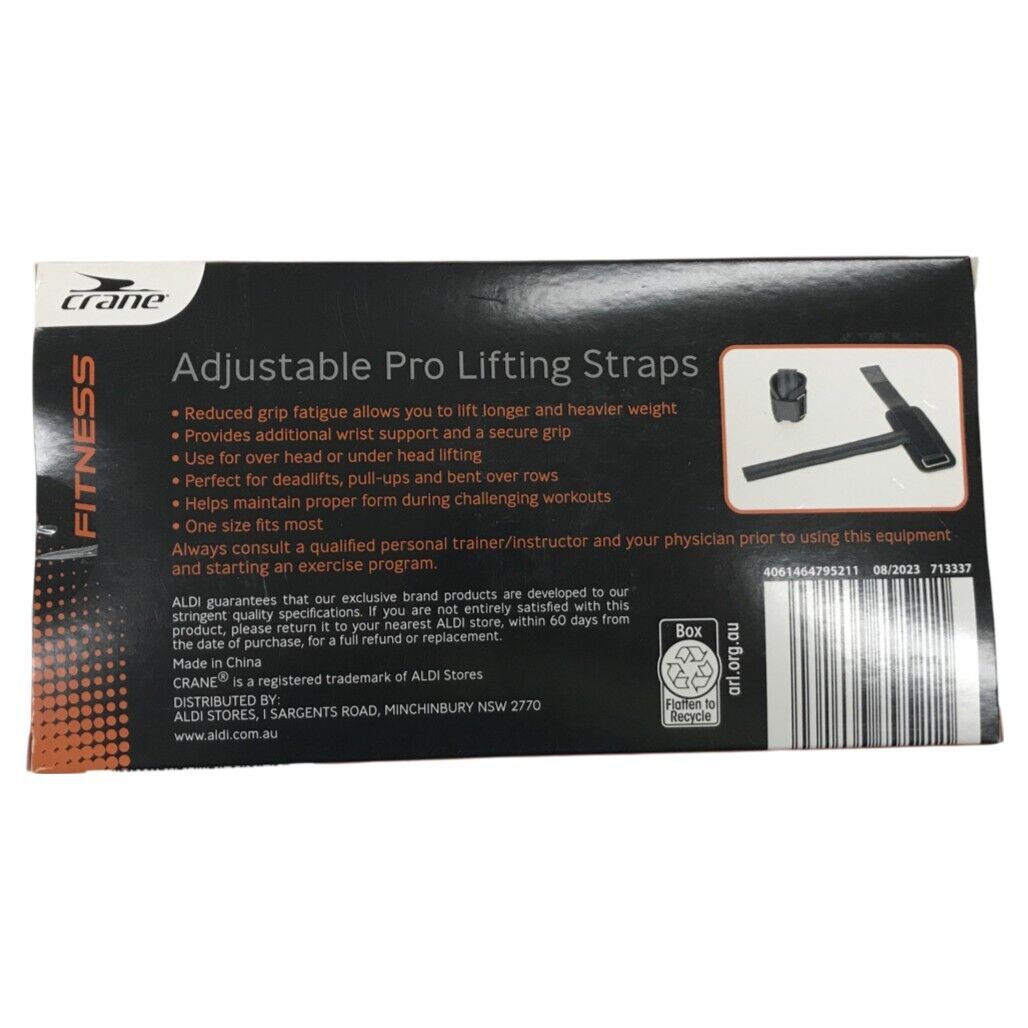 Elevate your weight training routine with these sleek and functional Crane Fitness Adjustable Pro Lifting Straps. Designed in a timeless black color, these straps add a professional touch to your gym gear while providing essential support during heavy lifts. New with tags, they are ready to help you achieve your fitness goals with confidence and durability.