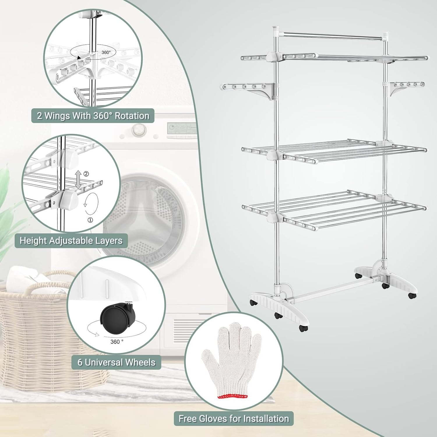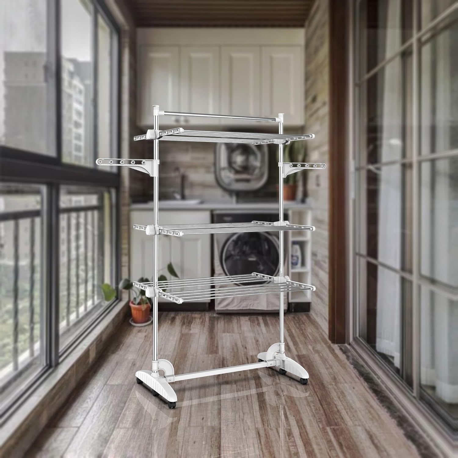 Discover the Todeco 3 Tier Clothes Airer, a versatile and efficient solution for your laundry drying needs. This folding stainless steel laundry drying rack features an adjustable dry rail hanger with wings and a portable top bar, perfect for any home. Ideal for small spaces, it allows you to dry clothes quickly and easily.