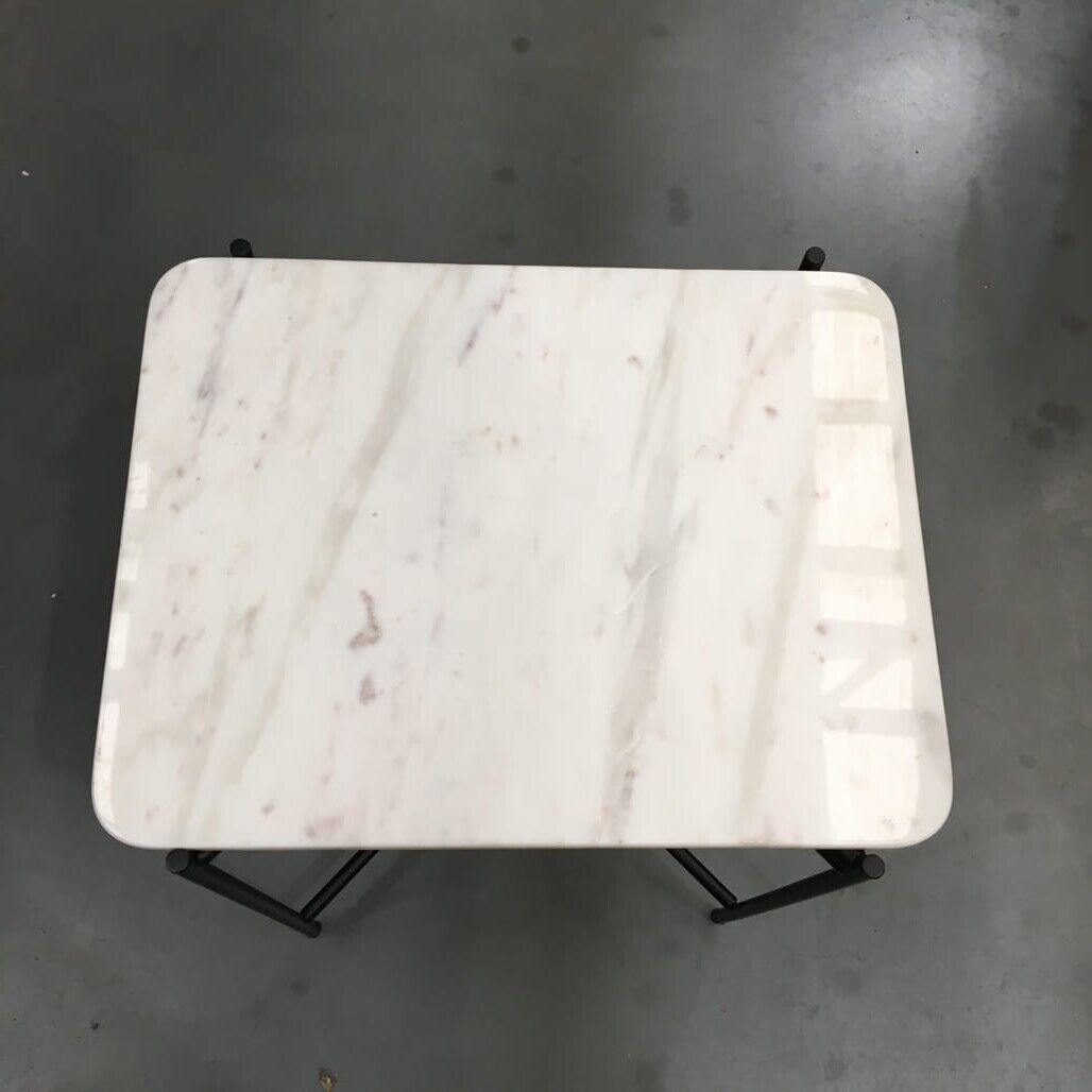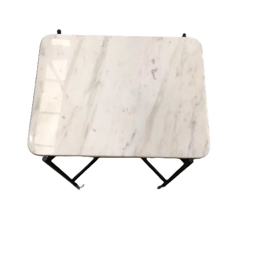 Elevate your space with this sleek and modern side table, designed to add a touch of elegance to any room. Its white marble top paired with sturdy metal legs creates a timeless aesthetic that complements both indoor and outdoor settings. Perfectly sized and brand new, this table is a versatile addition to your home or patio.