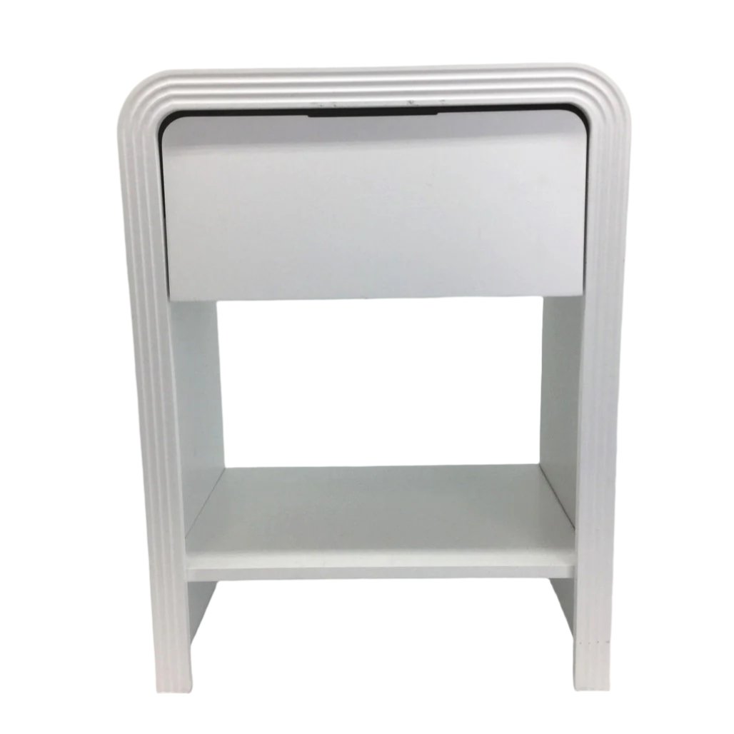 Elevate your bedroom or living space with this sleek white U-shaped arched bedside table. Its smooth finish and modern design add a touch of elegance to any room, while the single drawer offers practical storage. Perfect for those seeking a blend of style and functionality, this medium-large table is ready to refresh your home decor.
