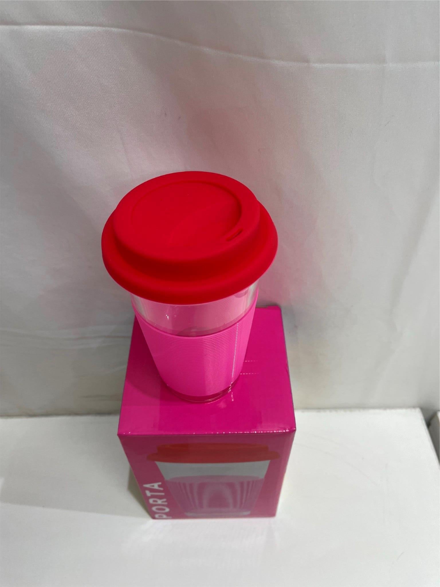 Add a pop of summer fun to your day with this vibrant pink travel mug. Its printed silicone pattern and quality borosilicate glass make it both stylish and durable. Perfect for home, work, or on-the-go, this lead-free and BPA-free mug holds a generous 450ml capacity for your favorite beverages.