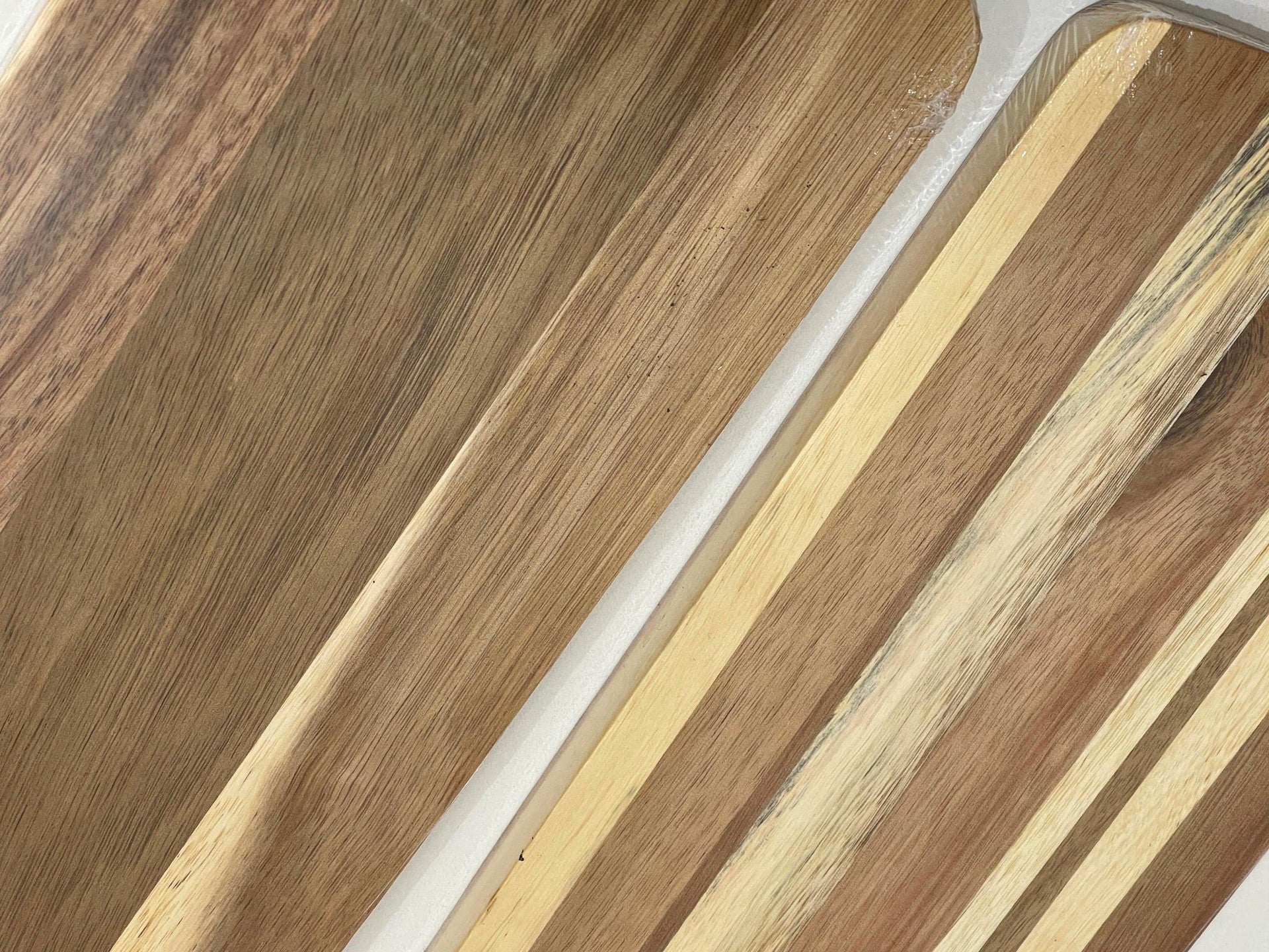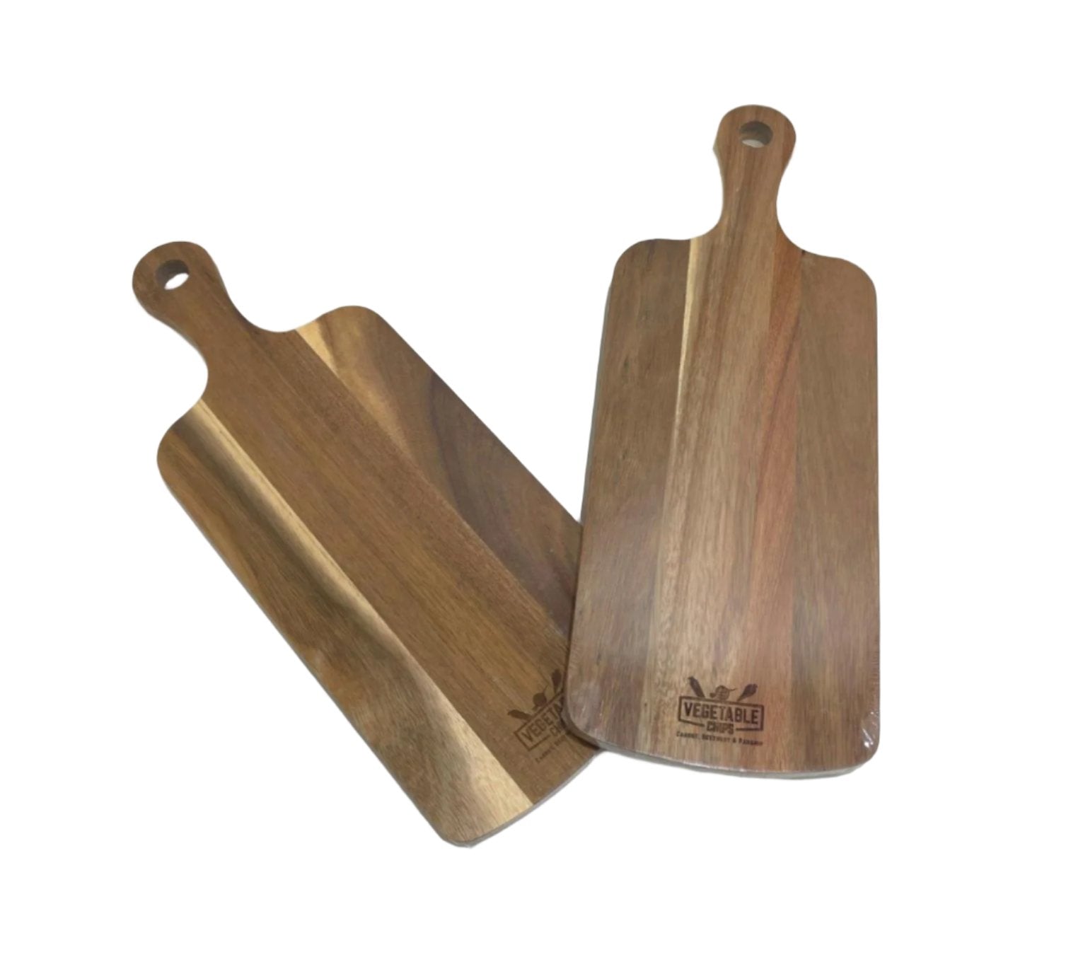 Transform your dining experience with this stunning set of two natural acacia wood serving platters. Their elegant brown hue and natural contrasting patterns add a touch of sophistication to any table setting. Crafted from durable acacia wood, these platters are both functional and stylish, perfect for serving vegetable chips or other culinary delights.