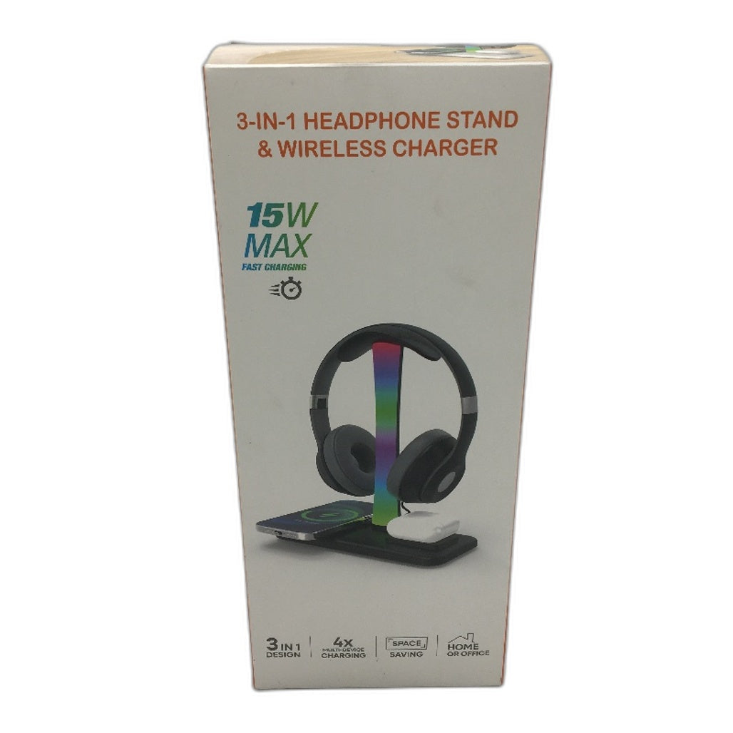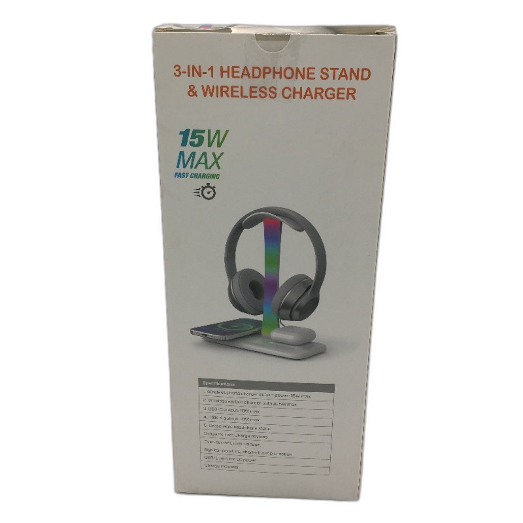 - 3 in 1 15W Max Fast Charging RGB Light Headphone Stand and Wireless Charger NEW