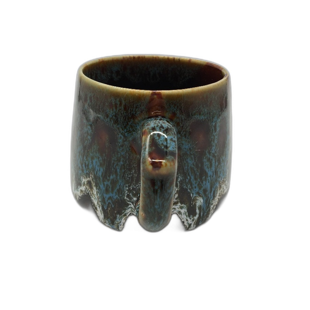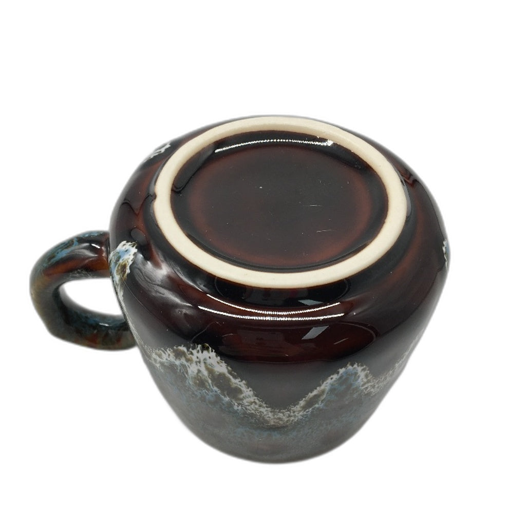 - 350ml Vintage Style Glazed Ceramic Blue and Brown Coffee Mug with Handle NEW