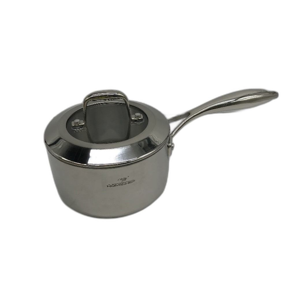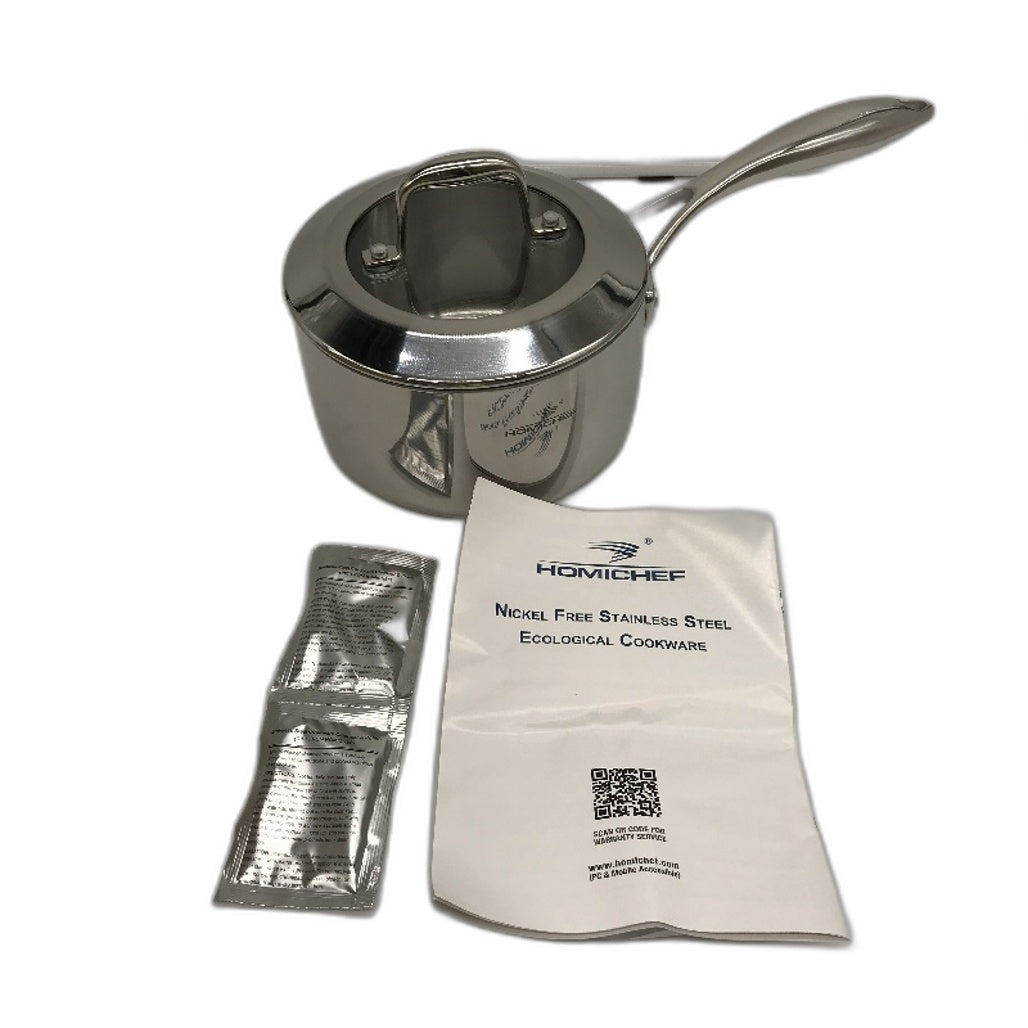 - HOMICHEF 1.8 Quart Mirror Polished Stainless Steel Sauce Pan with Glass Lid NEW