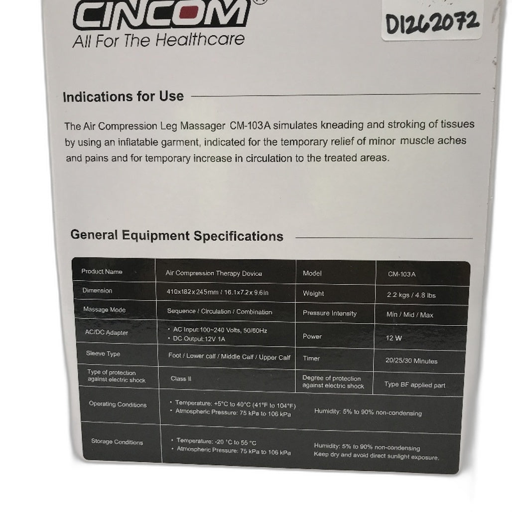 - CINCOM CM-103A Air Compression Therapy Device Full Leg Muscle Massager NEW
